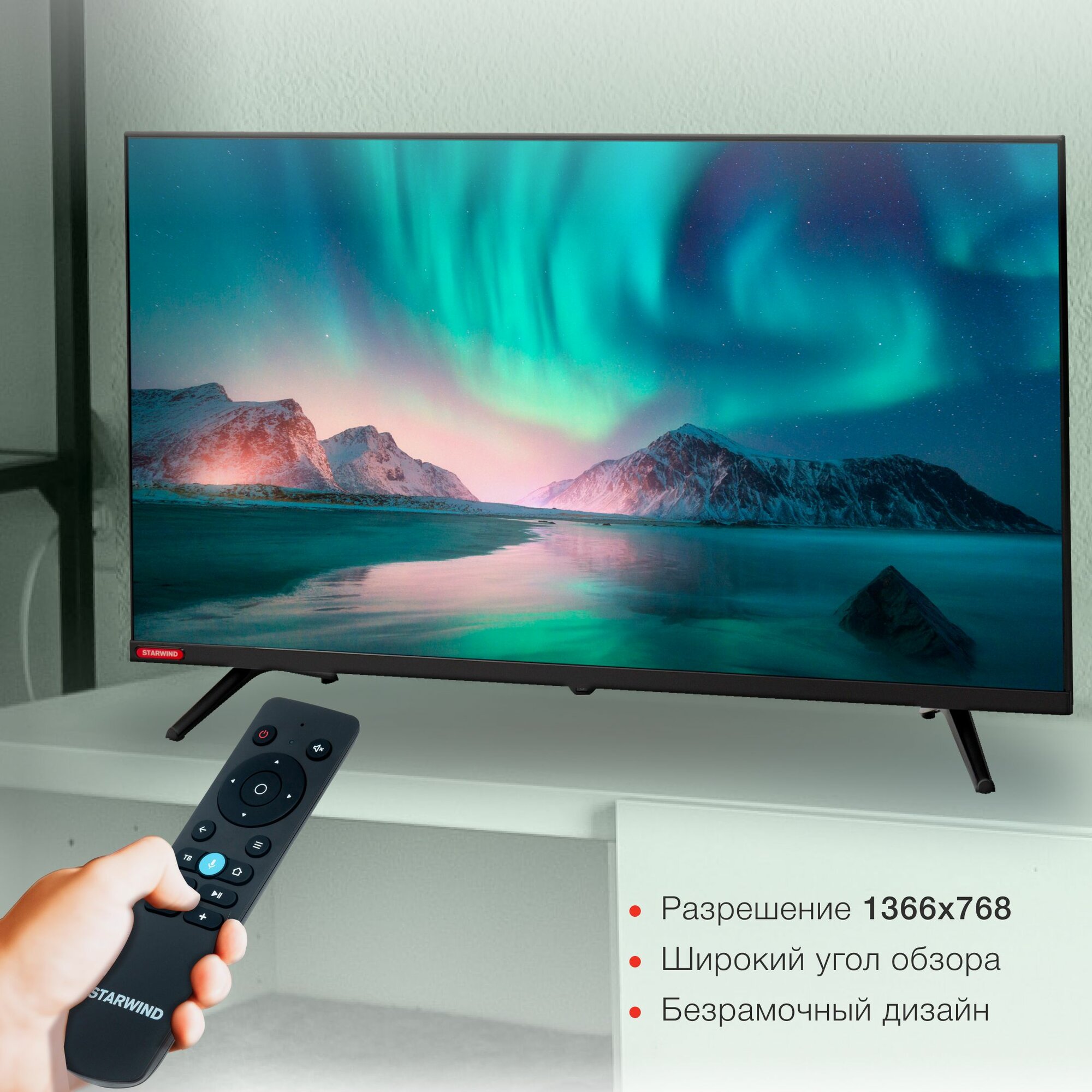 Стильный черный корпус телевизора Starwind 3234 SW-LED32SG300 гармонично впишется в любой интерьер. Тонкие рамки вокруг экрана создают эффект погружения в изображение, а лаконичный дизайн придает телевизору современный вид. Он станет прекрасным дополнением вашей гостиной, спальни или кухни.