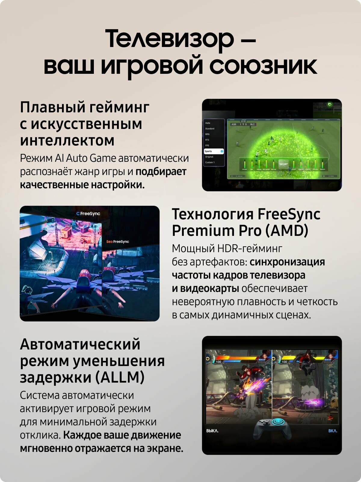 Благодаря инновационному процессору, телевизор оптимизирует каждое изображение в режиме реального времени, обеспечивая плавность и четкость даже в самых динамичных сценах. Наслаждайтесь фильмами, спортивными трансляциями и играми без размытия и искажений.