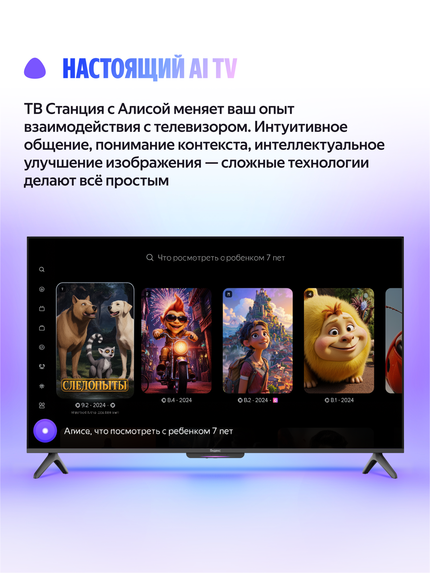 Встроенный голосовой помощник Алиса станет вашим надежным помощником в управлении телевизором и другими умными устройствами в вашем доме. Просто скажите, что вы хотите посмотреть, какую музыку включить или какую информацию найти, и Алиса мгновенно выполнит вашу команду.