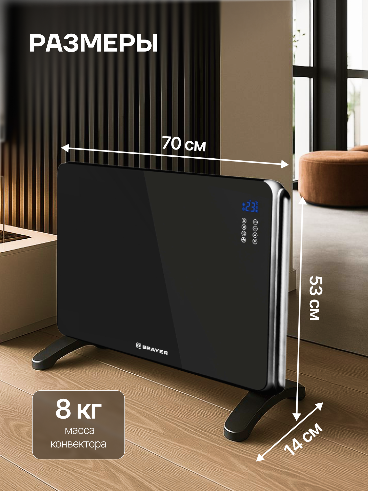 Ищете эффективный и стильный способ обогреть помещение? Конвекторный тепловентилятор Brayer BR4882 – это современное решение для создания комфортного микроклимата в вашем доме или офисе. Элегантный черный дизайн, сочетающийся с высокой производительностью, делает его не только полезным, но и привлекательным дополнением к интерьеру.