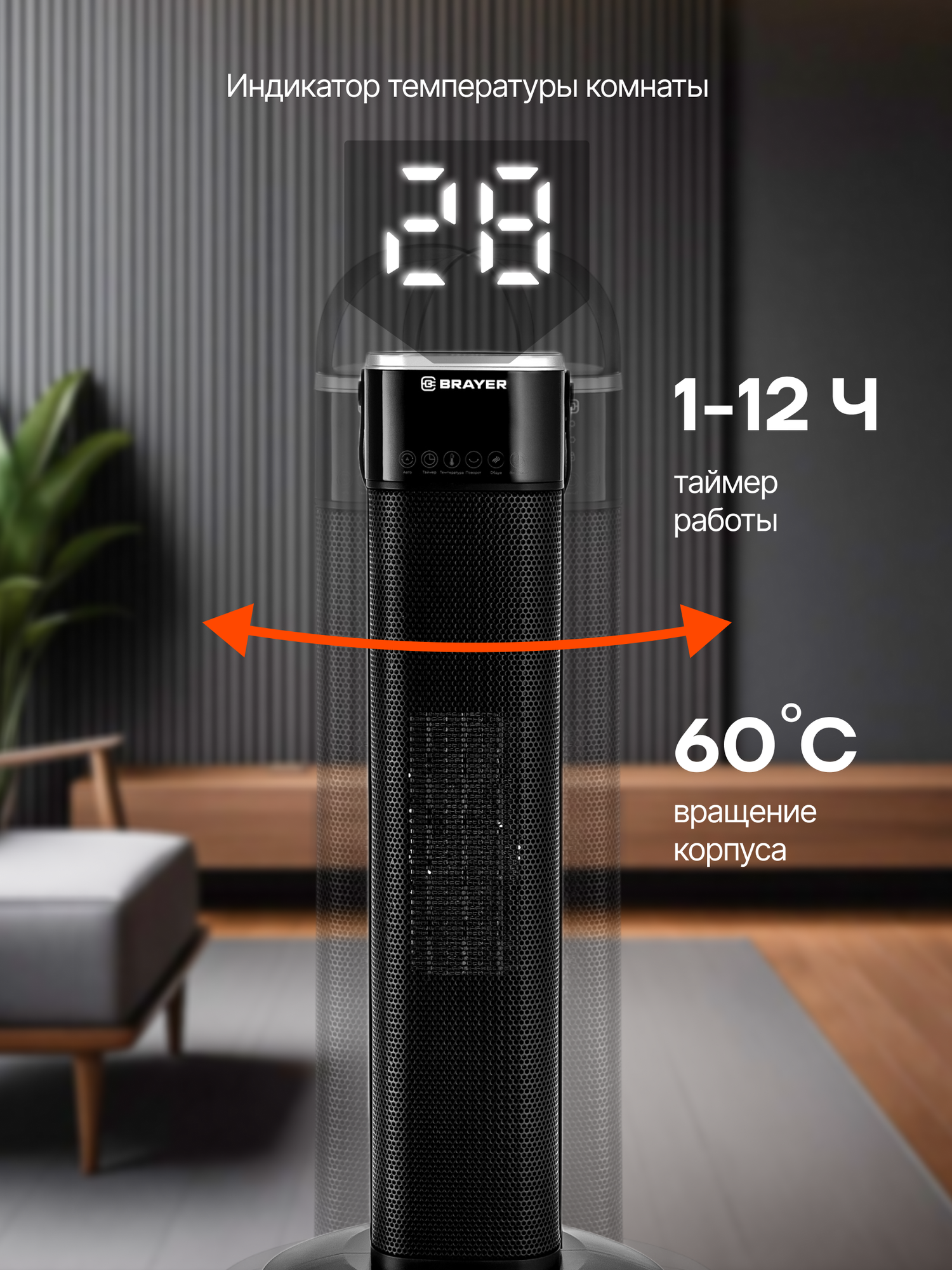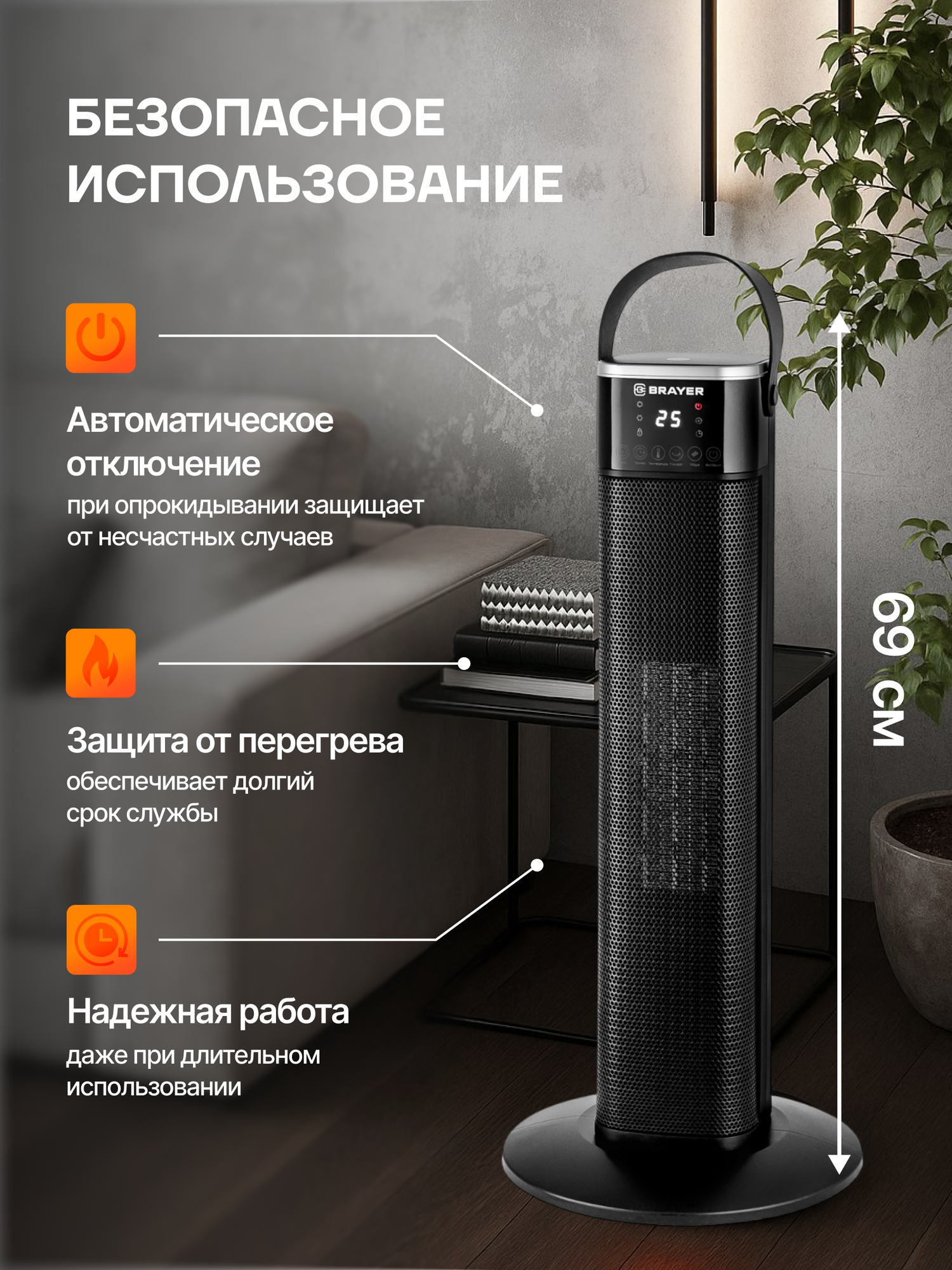 Керамический нагревательный элемент – это гарантия безопасности и долговечности. В отличие от обычных спиральных нагревателей, керамика не пересушивает воздух и не сжигает кислород, создавая комфортный микроклимат в помещении. Тепловентилятор Brayer BR4896 идеально подходит для использования в детских комнатах и спальнях.
