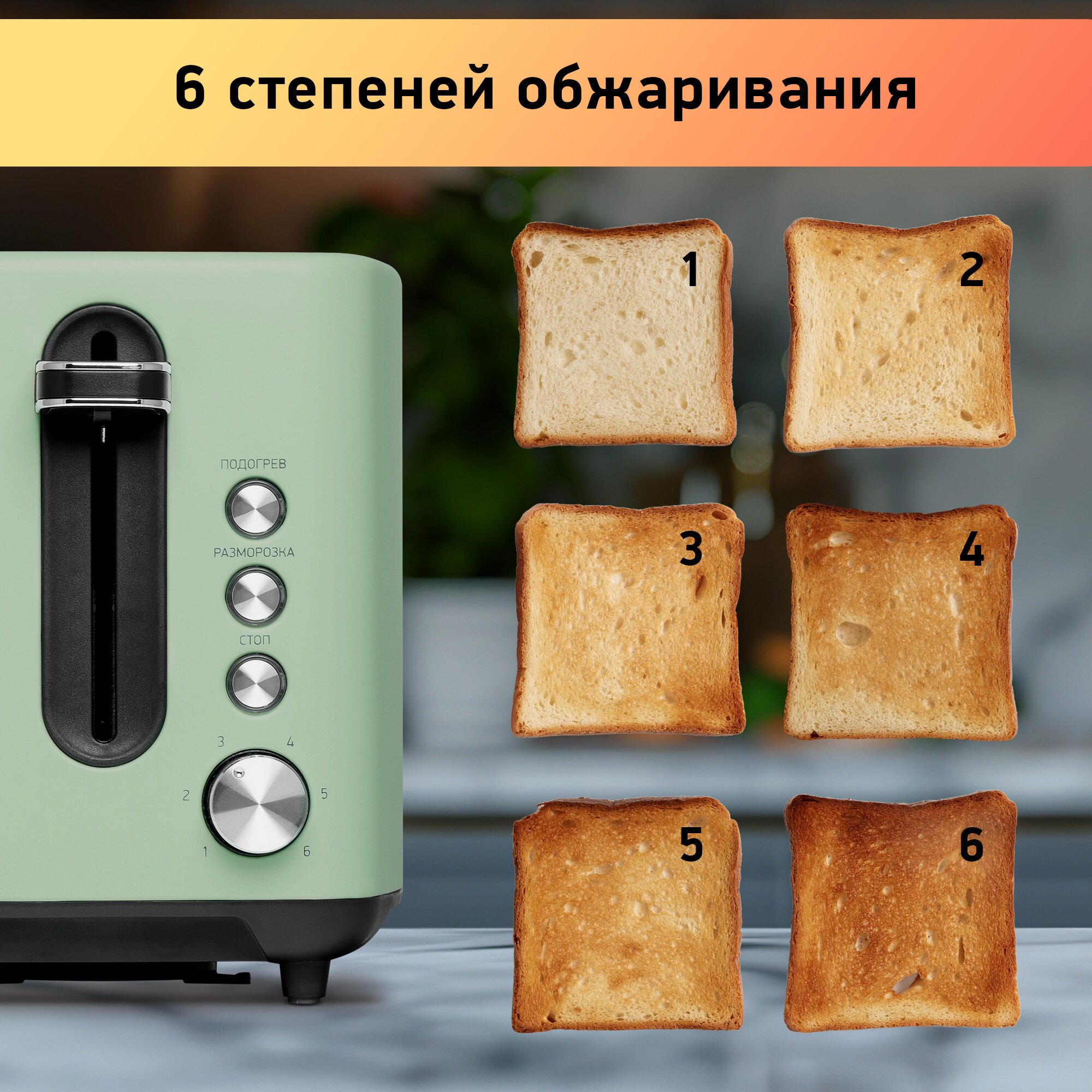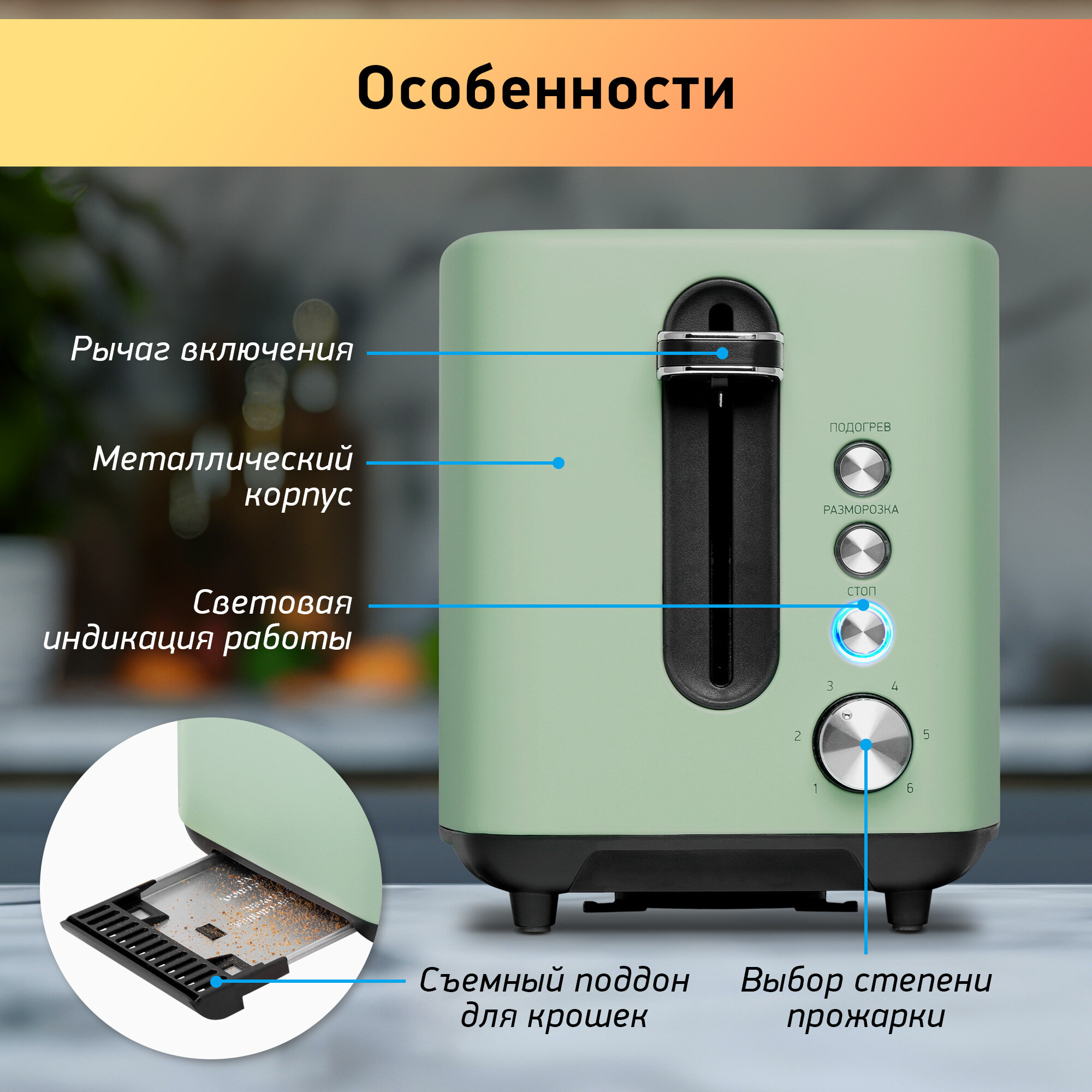 Этот тостер не только отлично справляется со своей основной задачей – приготовлением тостов, но и предлагает дополнительные функции для вашего удобства. Вам больше не нужно беспокоиться о том, что хлеб зачерствеет, если вы не успели его сразу использовать. Функция подогрева поможет сохранить его теплым и аппетитным. А если у вас есть замороженный хлеб, функция разморозки быстро вернет ему свежесть, чтобы вы могли насладиться вкусным завтраком в любой момент.