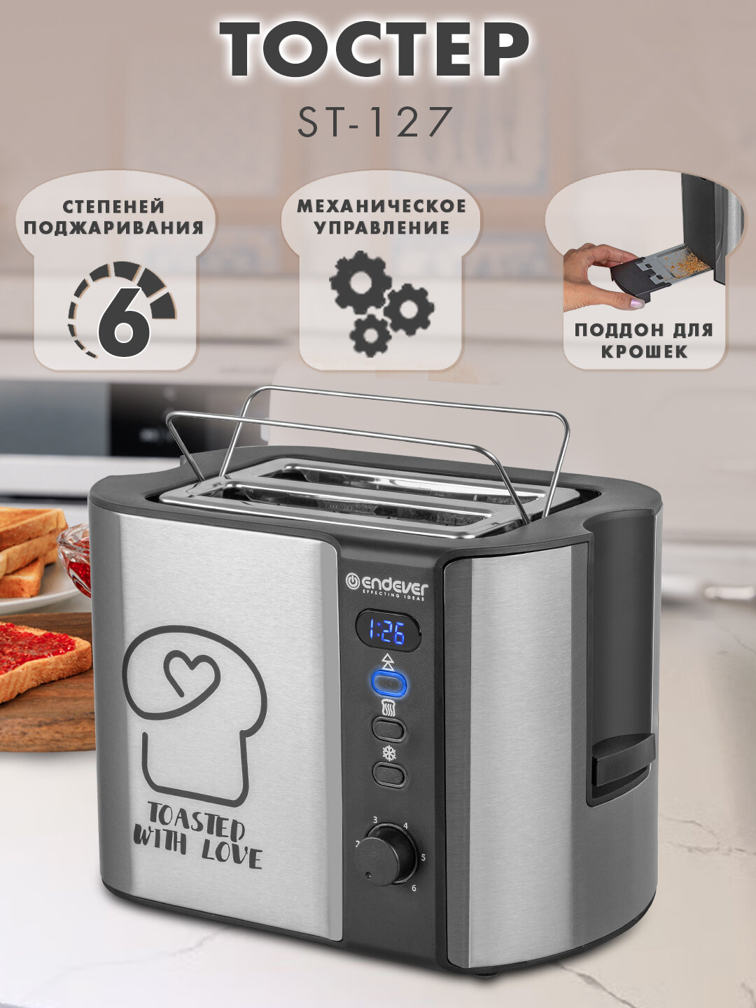 С Endever Skyline ST-127 каждое утро станет для вас настоящим удовольствием. Наслаждайтесь хрустящими и ароматными тостами, приготовленными с любовью и легкостью! Забудьте о подгоревших и невкусных тостах – с этим тостером ваш завтрак всегда будет идеальным.