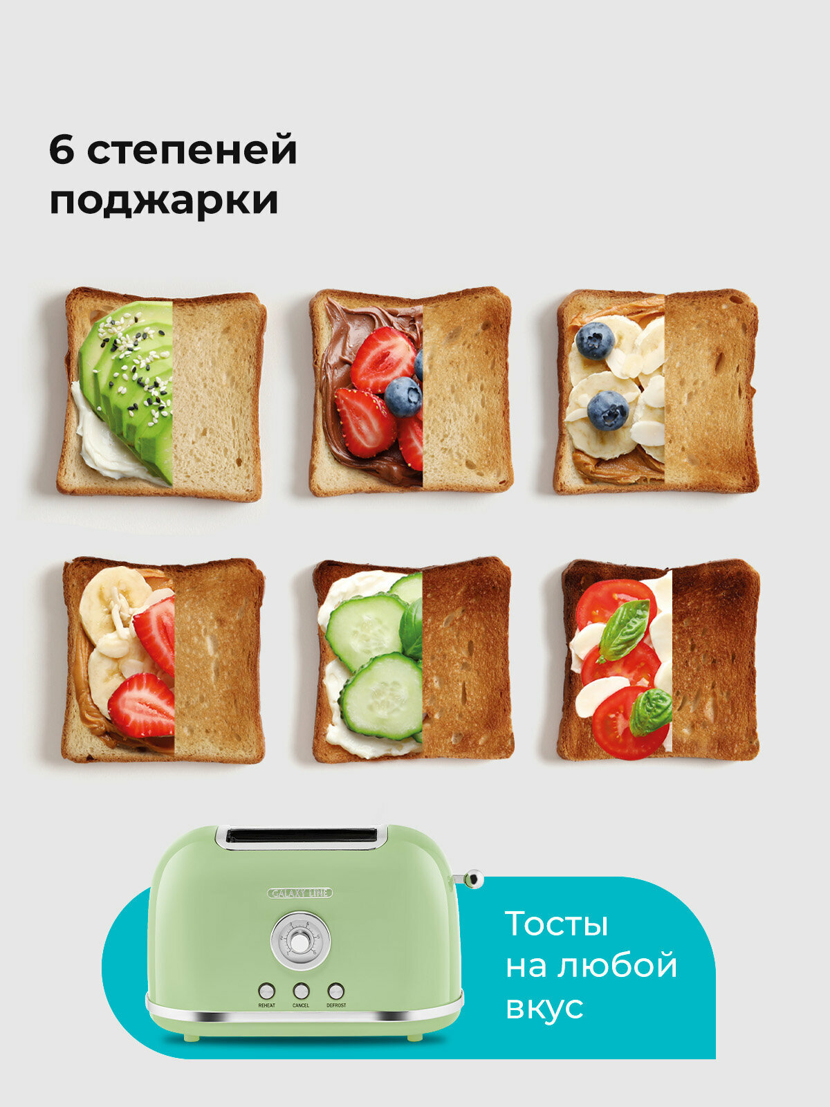 Тостер Galaxy Line Fashion Show GL2911 – это отличный выбор для тех, кто ценит качество, стиль и удобство. Подарите себе и своим близким возможность наслаждаться вкусными и полезными завтраками каждый день. Сделайте свой день ярче и энергичнее с идеальными тостами!