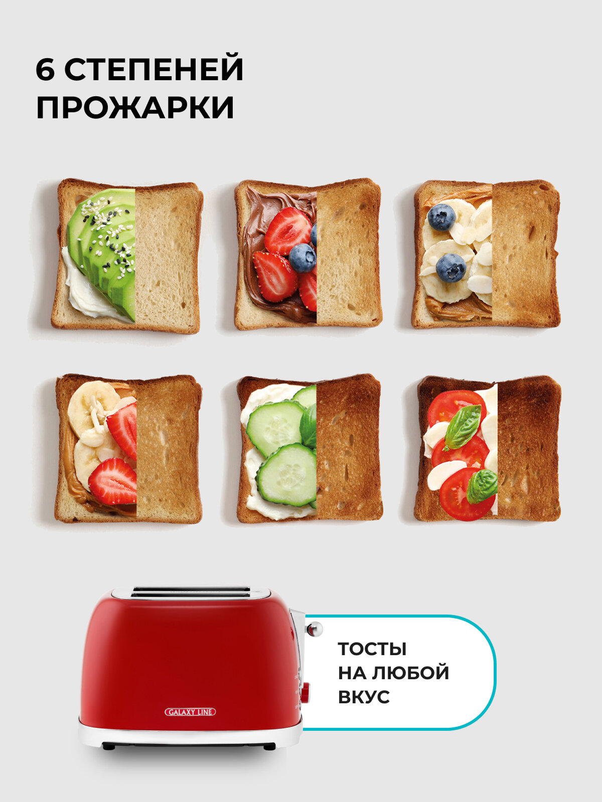 Начните свой идеальный день с хрустящих и ароматных тостов, приготовленных с помощью тостера Galaxy Line Fashion Show GL2919! Этот стильный и функциональный прибор станет незаменимым помощником на вашей кухне, позволяя быстро и легко насладиться любимым завтраком.