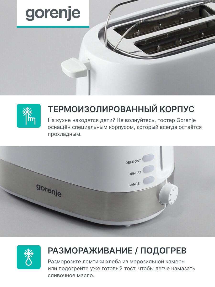 Начните свой день с хрустящих и аппетитных тостов, приготовленных с помощью тостера Gorenje T850WE. Этот элегантный прибор в белом цвете станет прекрасным дополнением к вашей кухне и поможет вам быстро и легко приготовить идеальный завтрак для всей семьи.