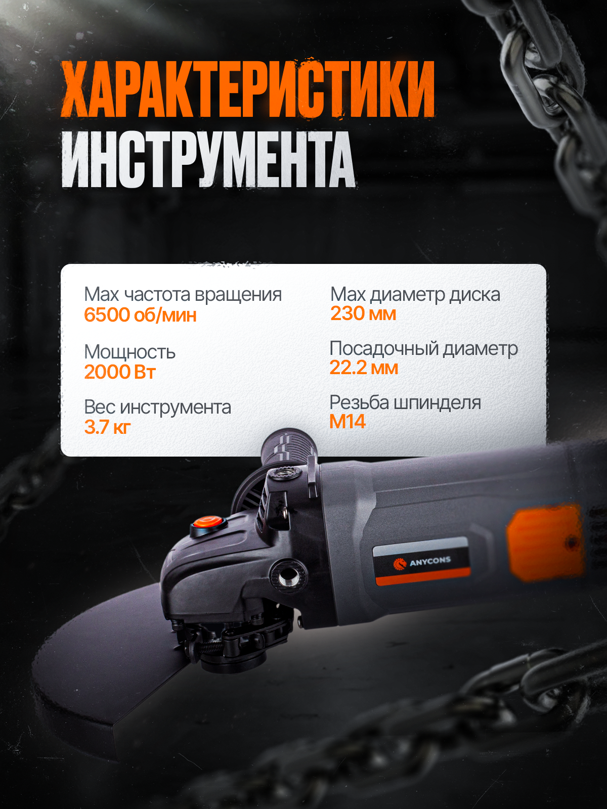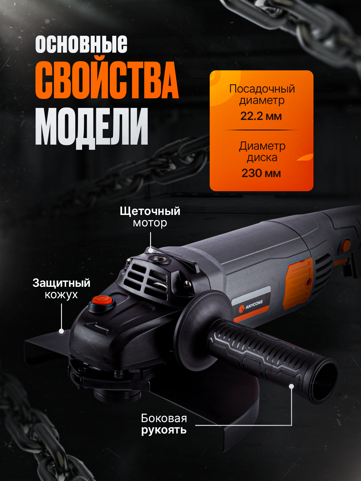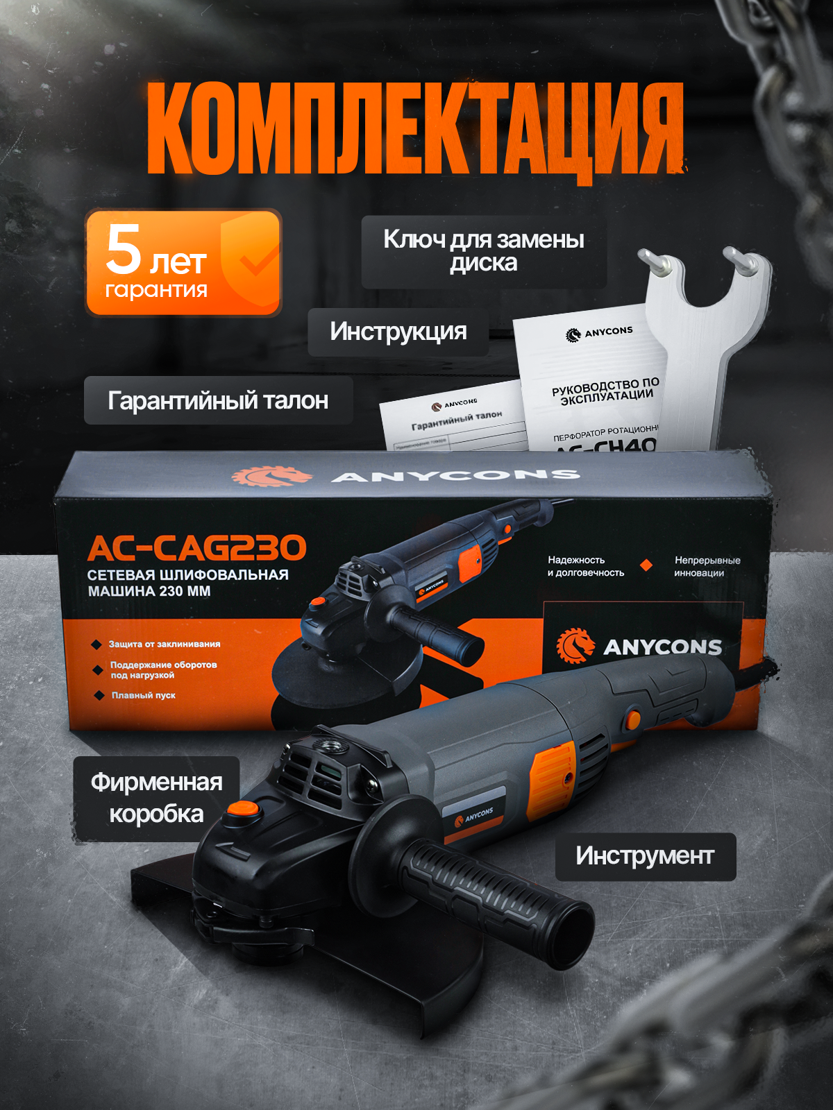 Закажите сетевую УШМ ANYCONS AC-CAG230-S с антивибрацией прямо сейчас и убедитесь в ее превосходных характеристиках! Почувствуйте разницу с мощным и надежным инструментом от ANYCONS!