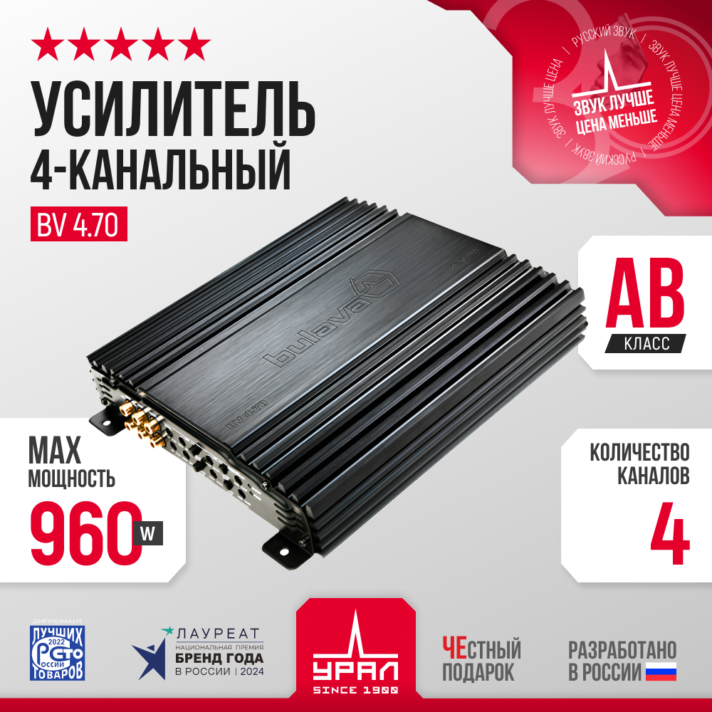 Ural BV 4.70 обеспечивает чистый и мощный звук, позволяя вам наслаждаться любимой музыкой в полной мере. Его 4 канала позволяют подключить различные динамики, создавая объемное и сбалансированное звучание.