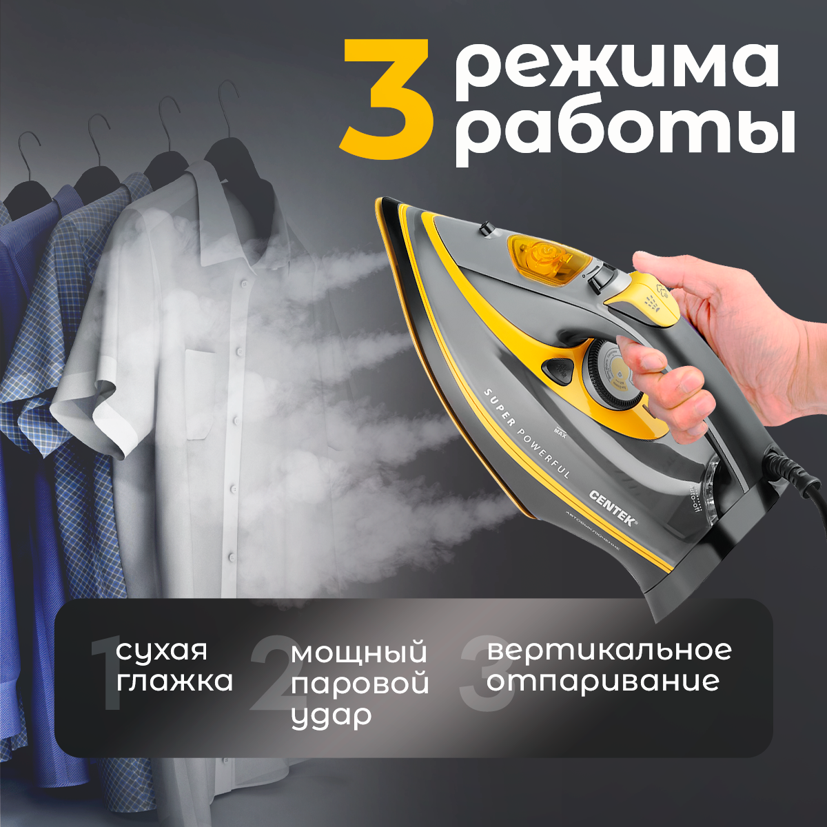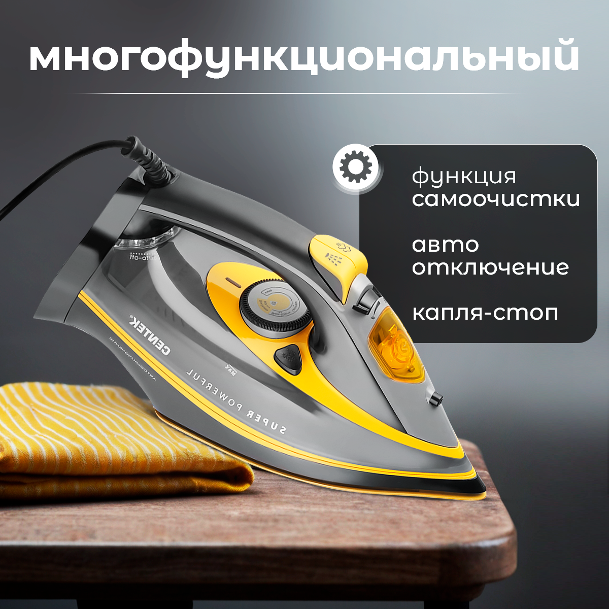 Приобретите паровой утюг Centek CT-2358 сегодня и забудьте о проблемах с глажкой навсегда! Наслаждайтесь безупречным результатом и сэкономьте свое время и энергию. Сделайте свой выбор в пользу качества и надежности.
