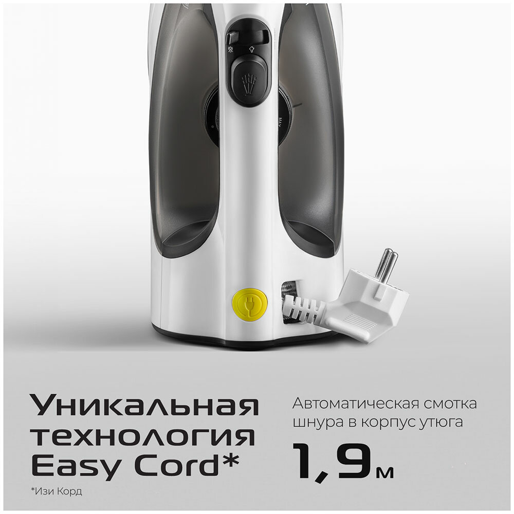 Эргономичный дизайн и удобная ручка позволяют комфортно держать утюг в руке, а легкий вес делает процесс глажки менее утомительным. Теперь вы сможете быстро и без усилий разгладить даже самые сложные складки.