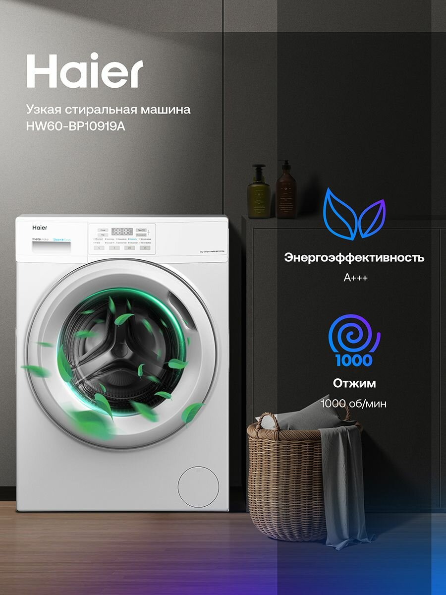 Ищете компактную и эффективную стиральную машину для небольшого пространства? Узкая стиральная машина Haier HW60-BP10919A станет отличным решением для вашей квартиры!