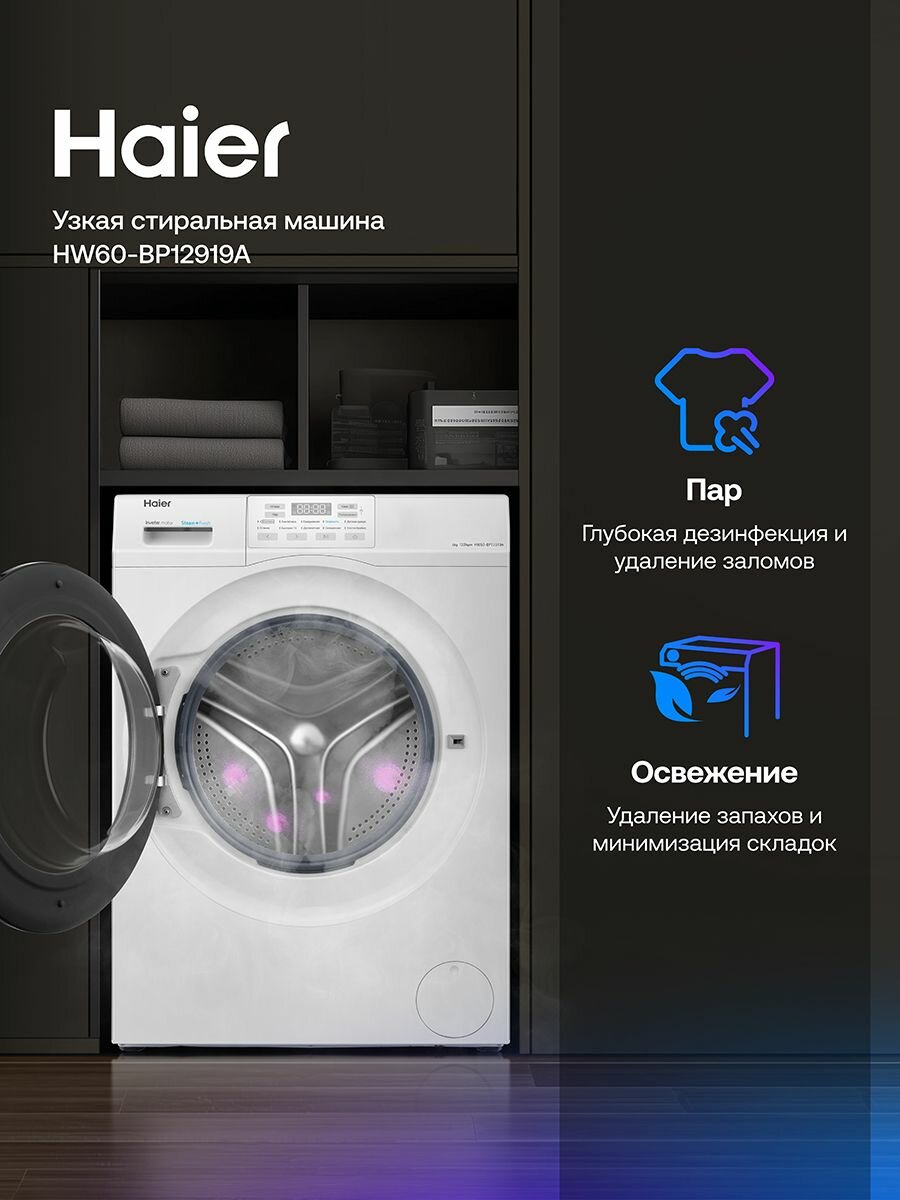 Закажите узкую стиральную машину Haier прямо сейчас и наслаждайтесь комфортом и эффективностью стирки, не жертвуя свободным пространством!