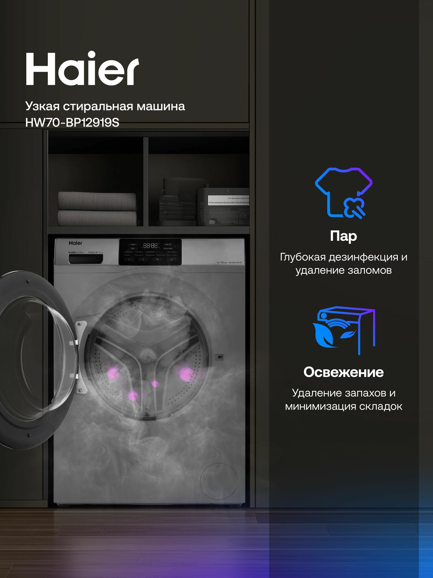 С этой узкой стиральной машиной Haier вы получите превосходное качество стирки, стильный дизайн и экономию пространства в одном устройстве. Сделайте свой быт комфортнее и эффективнее уже сегодня!