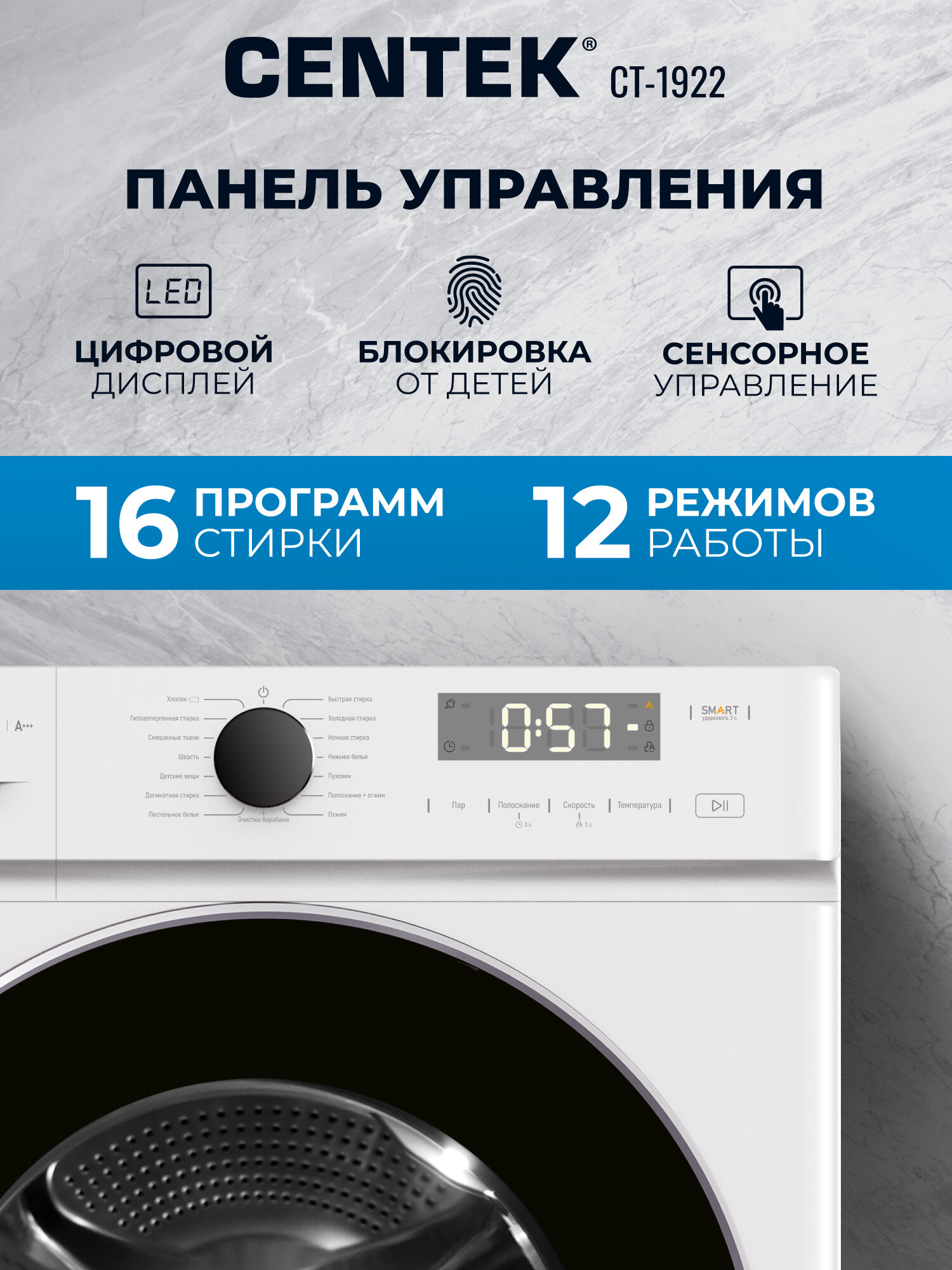 Закажите стиральную машину Centek CT-1922 прямо сейчас и получите надежного помощника в борьбе за чистоту вашего дома!