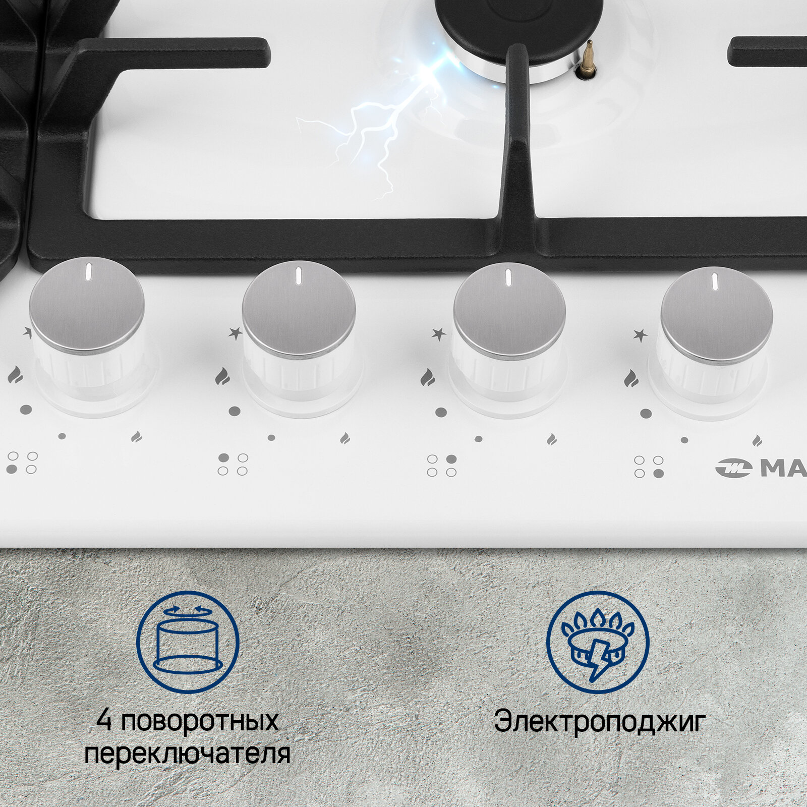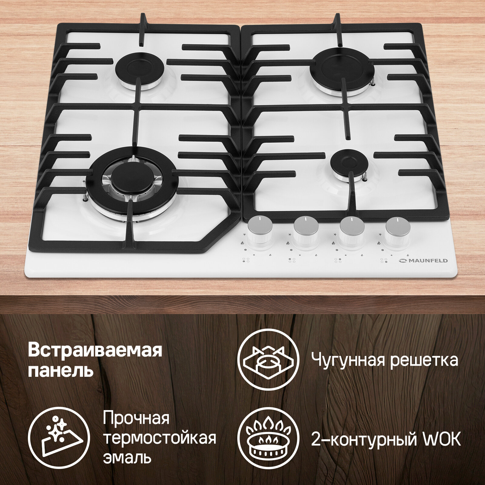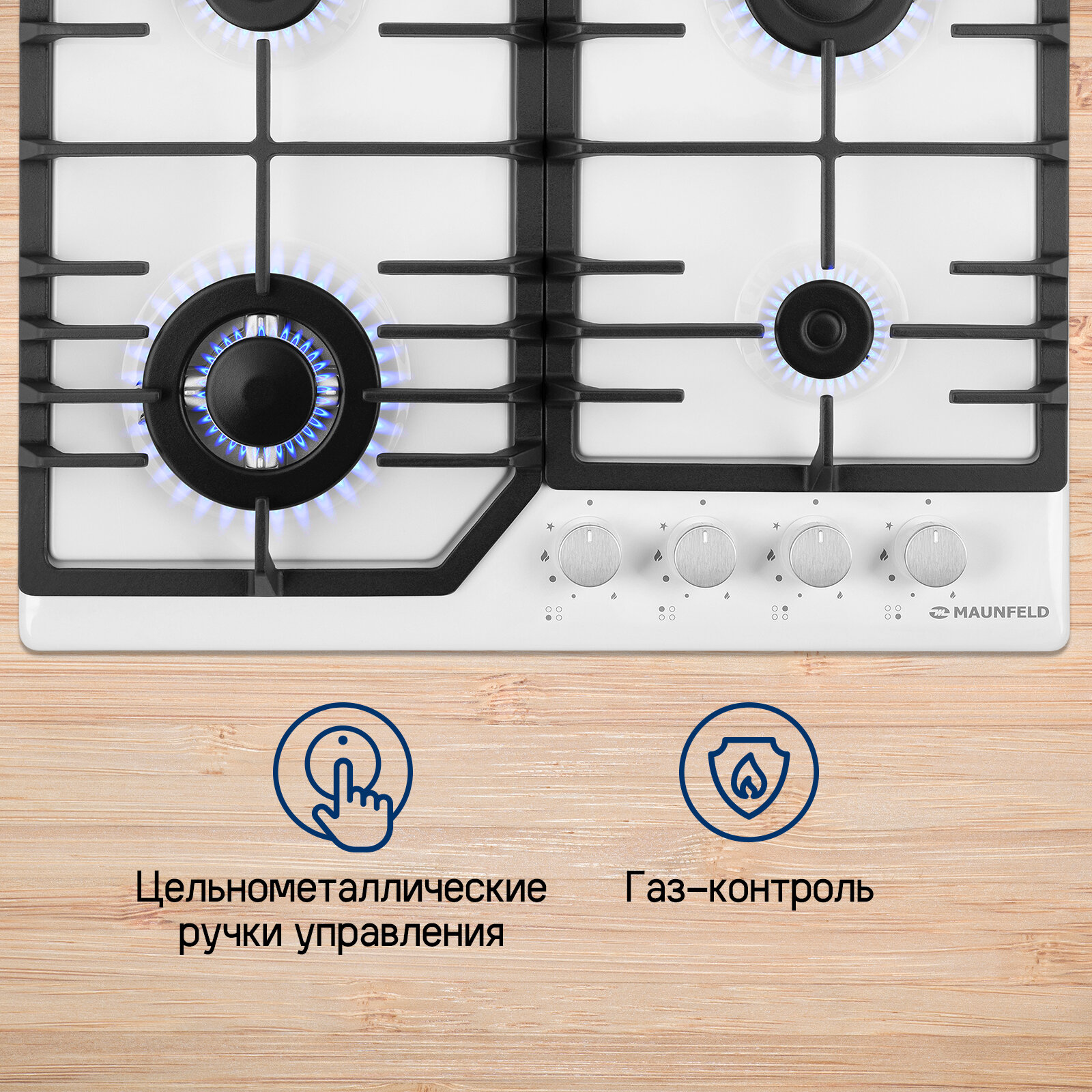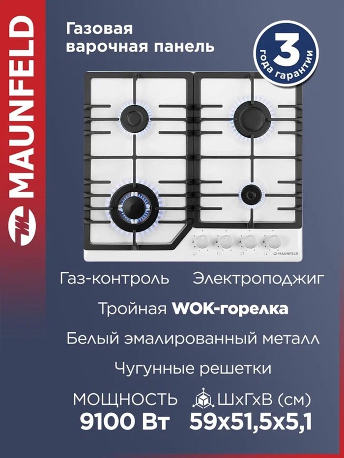 Выбирая газовую варочную панель Maunfeld EGHE6443CWG, вы выбираете надежность, функциональность и безупречный стиль для вашей кухни. Забудьте о хлопотах при готовке – наслаждайтесь процессом!