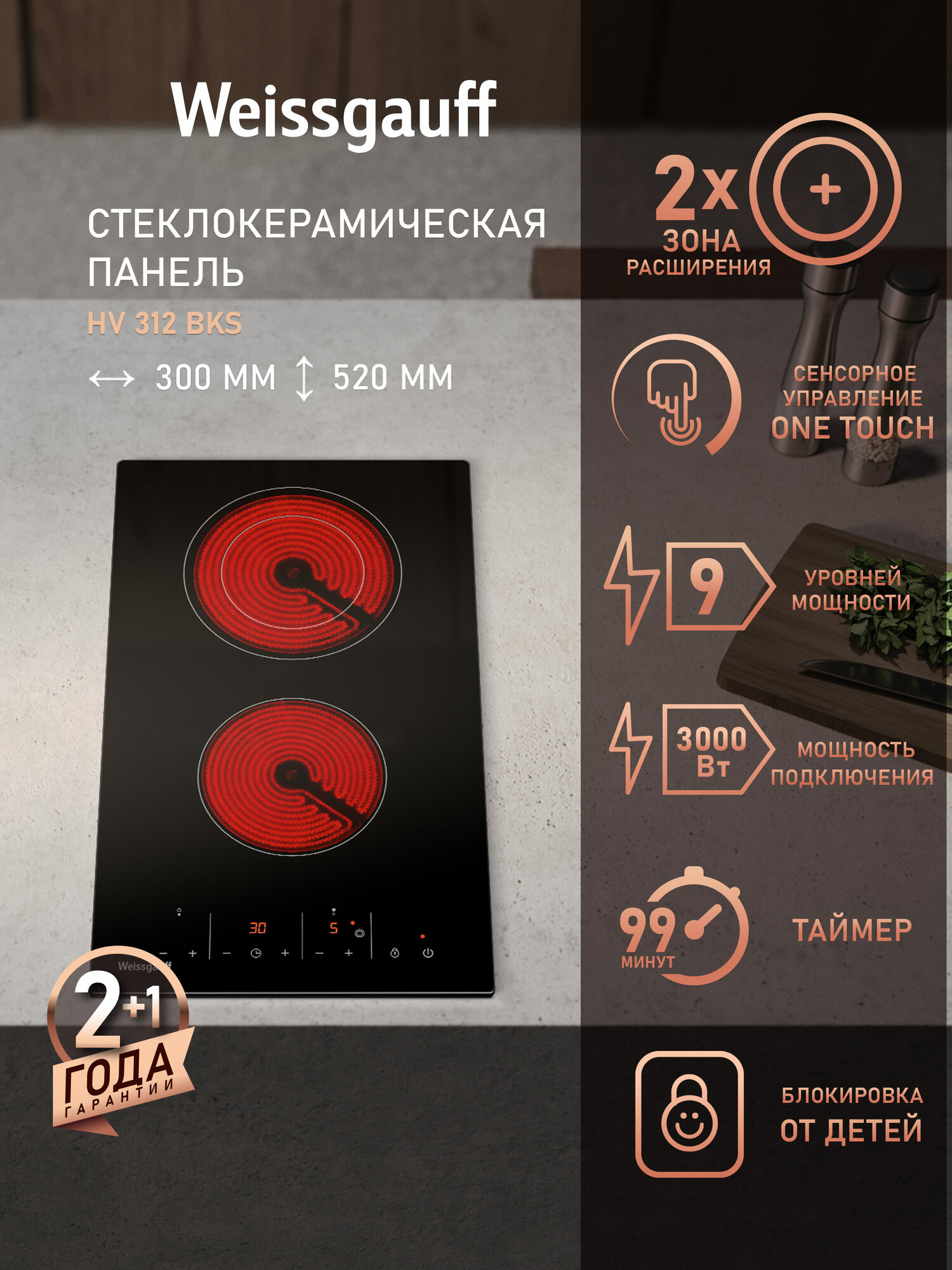 Выбирая Weissgauff HV 312 BKS, вы выбираете надежность, удобство и стиль для вашей кухни. Не упустите возможность приобрести эту замечательную варочную панель и наслаждаться процессом приготовления пищи!