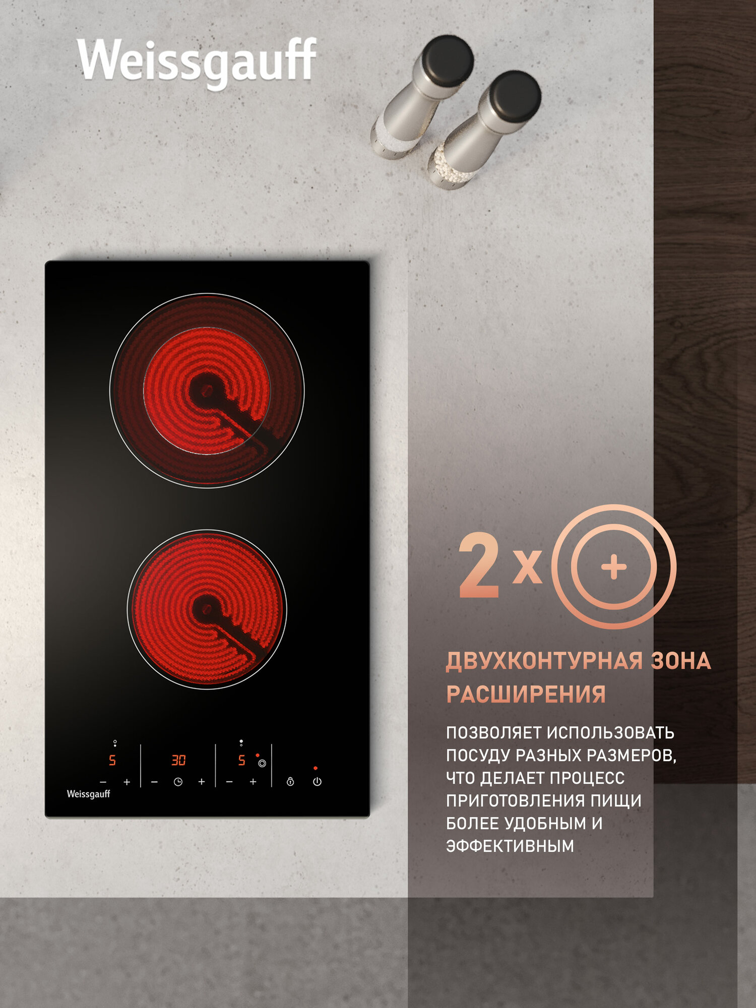 Встроенный таймер позволит вам контролировать время приготовления, освобождая вас от необходимости постоянно следить за плитой. Занимайтесь другими делами, пока Weissgauff HV 312 BKS готовит за вас!