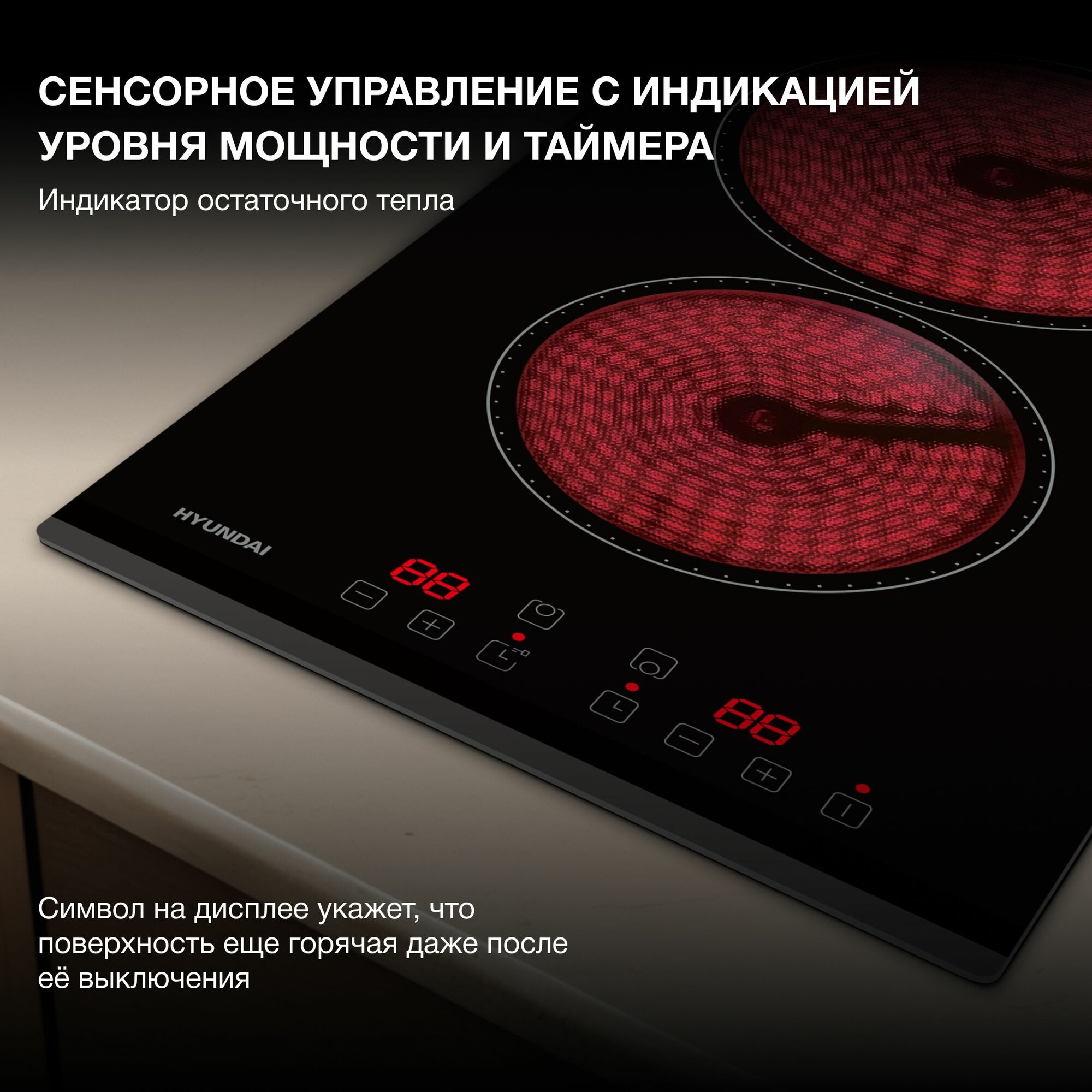 Варочная поверхность Hyundai HHE 3251 BG отличается высокой энергоэффективностью, что позволяет снизить затраты на электроэнергию. Она быстро нагревается и равномерно распределяет тепло, обеспечивая оптимальные условия для приготовления пищи. Вы сможете готовить любимые блюда быстрее и экономичнее.