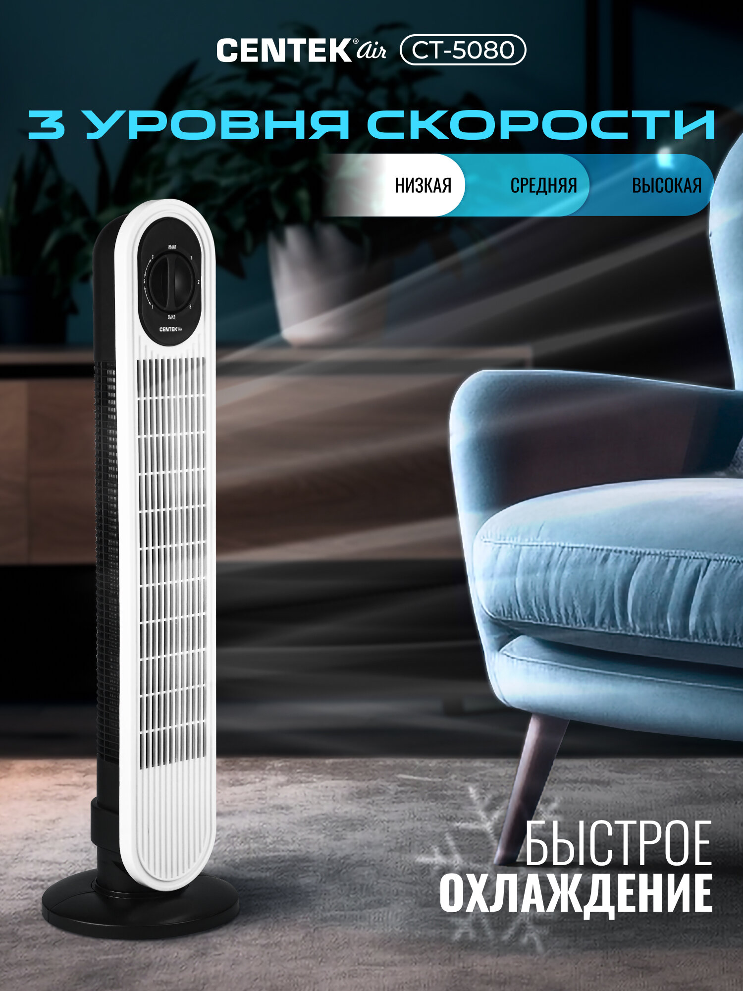 Сделайте свой дом оазисом прохлады с колонным вентилятором Centek CT-5080! Он идеально подходит для спален, гостиных, офисов и других помещений, где требуется создать комфортную атмосферу. Наслаждайтесь свежим воздухом и забудьте о жаре!