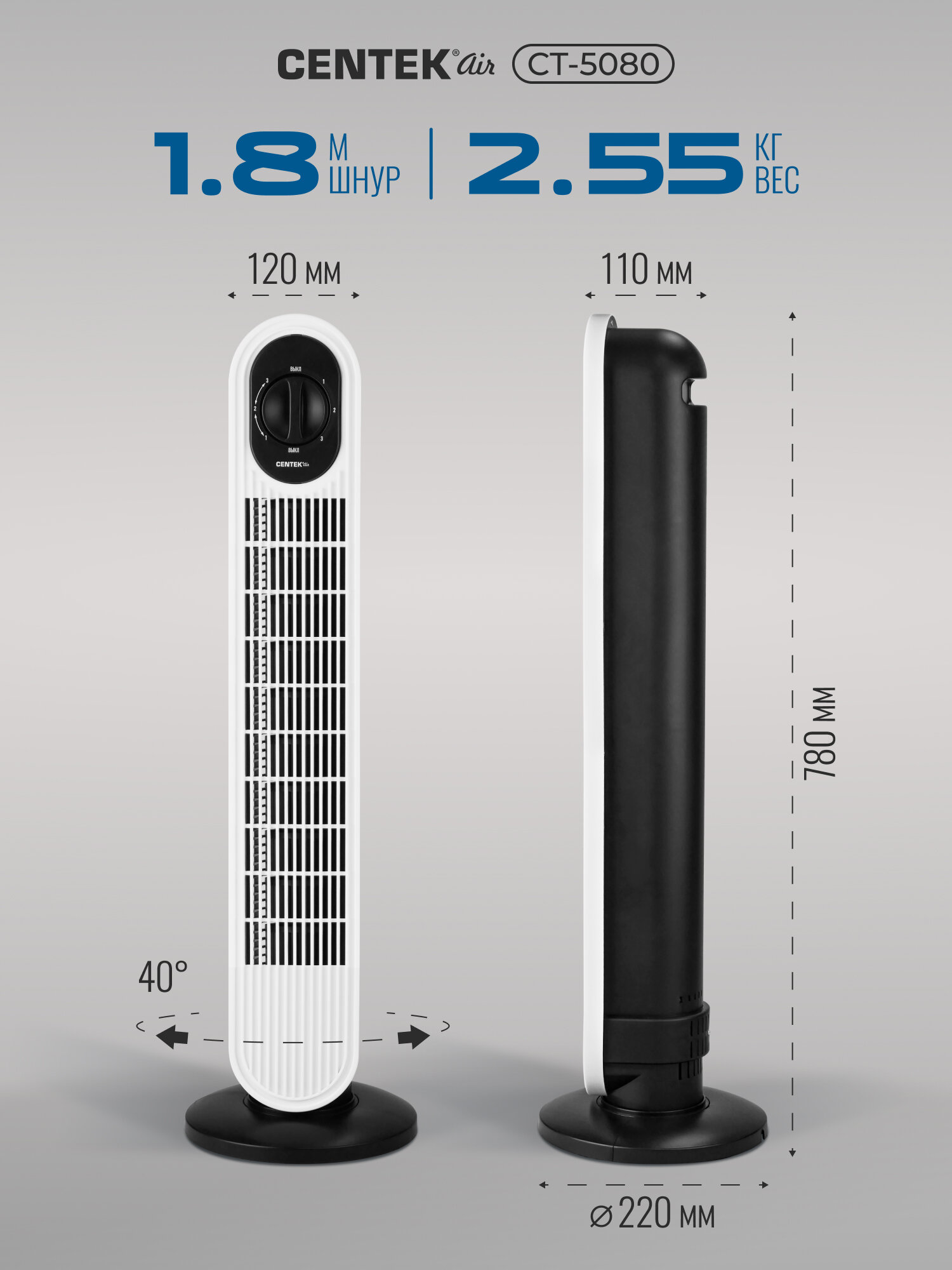 Ищете эффективное и стильное решение для создания комфортного микроклимата в вашем доме или офисе? Колонный вентилятор Centek CT-5080 – это идеальный выбор для тех, кто ценит сочетание функциональности, удобства и современного дизайна. Этот вентилятор станет вашим надежным помощником в жаркие дни, обеспечивая приятную прохладу и свежесть.