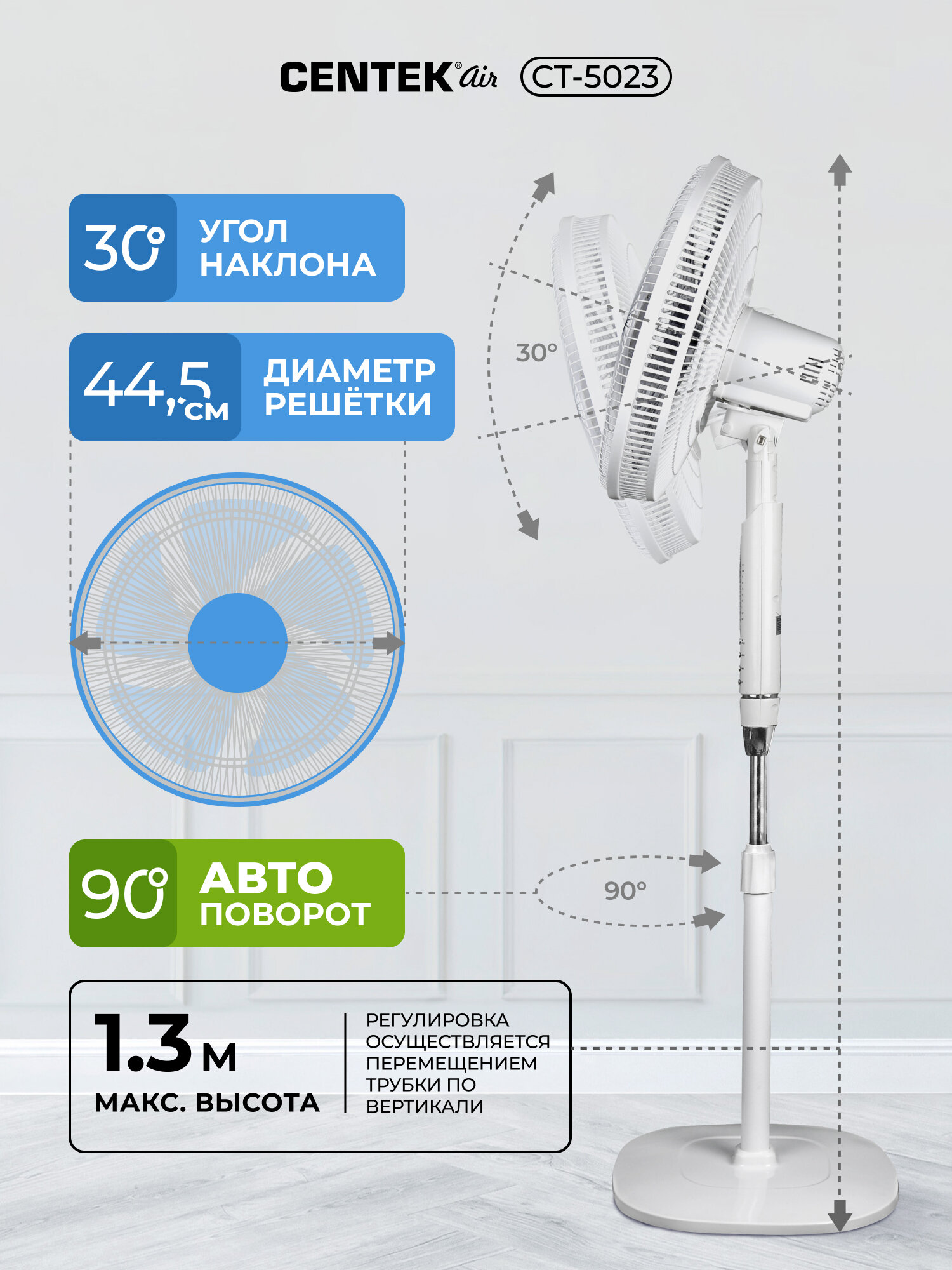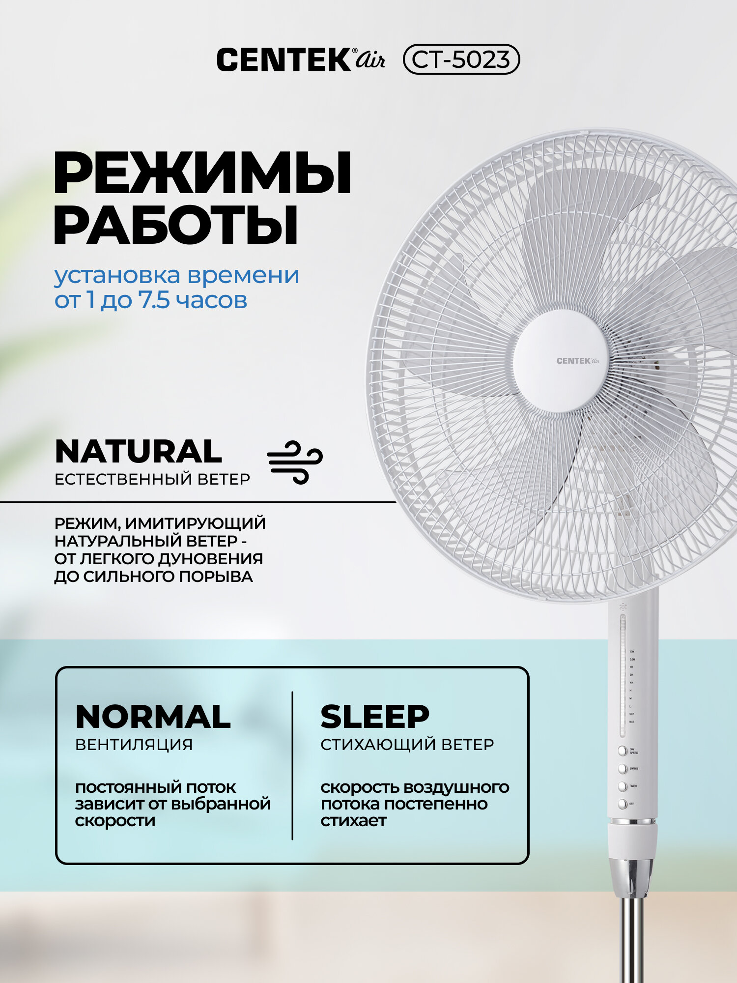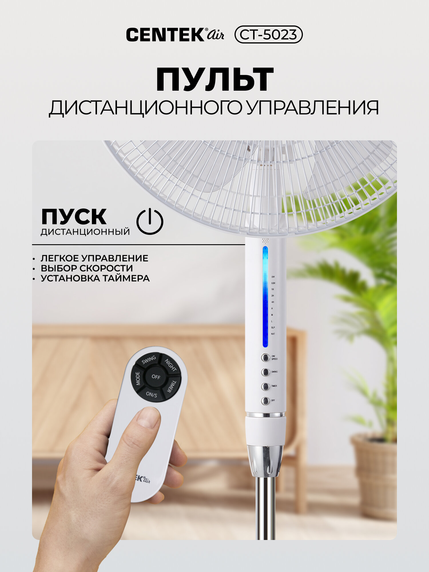 Наслаждайтесь прохладой и комфортом вместе с напольным вентилятором Centek! Закажите его прямо сейчас и забудьте о летней жаре.