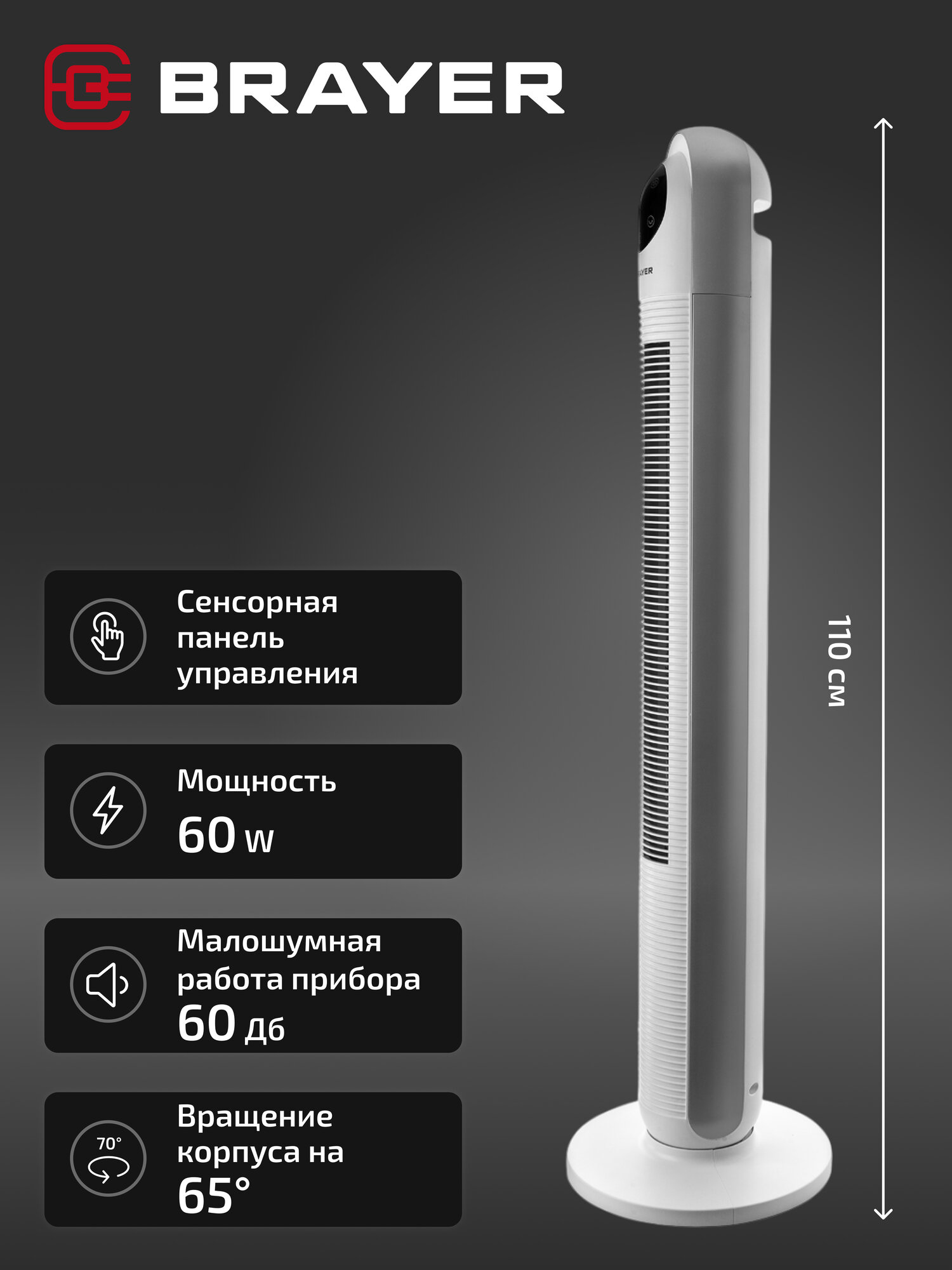 Ищете эффективный и стильный способ охладиться в жаркие летние дни? Обратите внимание на напольный колонный вентилятор Brayer BR4956!