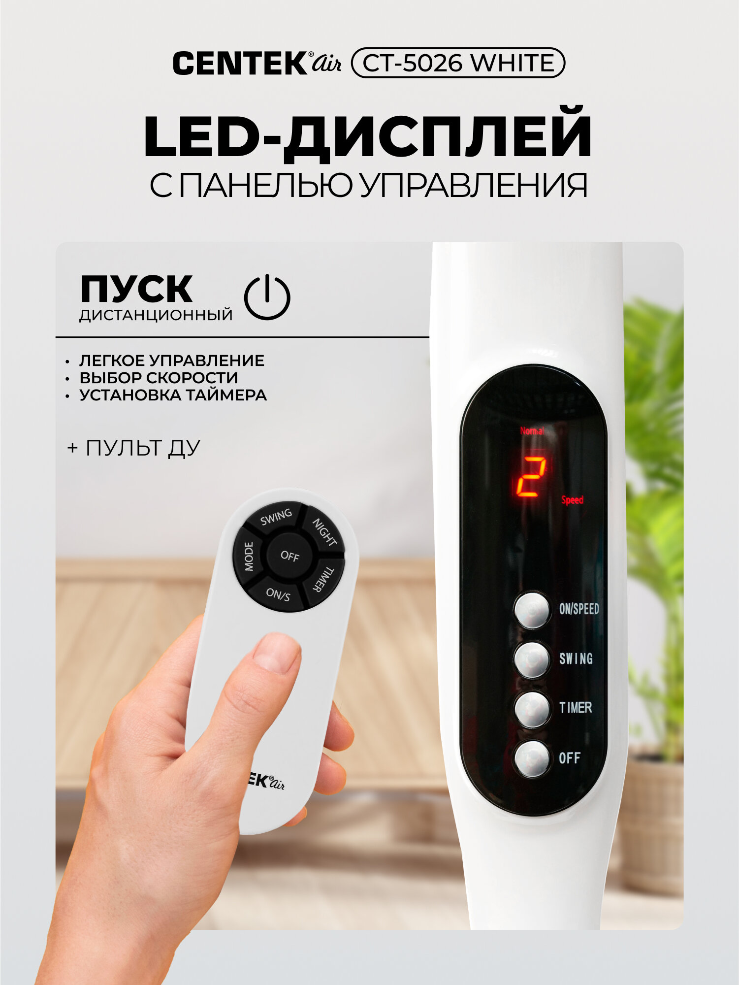 Забудьте о духоте и дискомфорте! Centek CT-5026 предлагает несколько режимов работы, позволяющих вам настроить интенсивность обдува в соответствии с вашими потребностями. Благодаря удобному пульту дистанционного управления вы сможете легко менять настройки, не вставая с дивана или кресла. Наслаждайтесь прохладой и уютом, не отвлекаясь от любимых занятий.