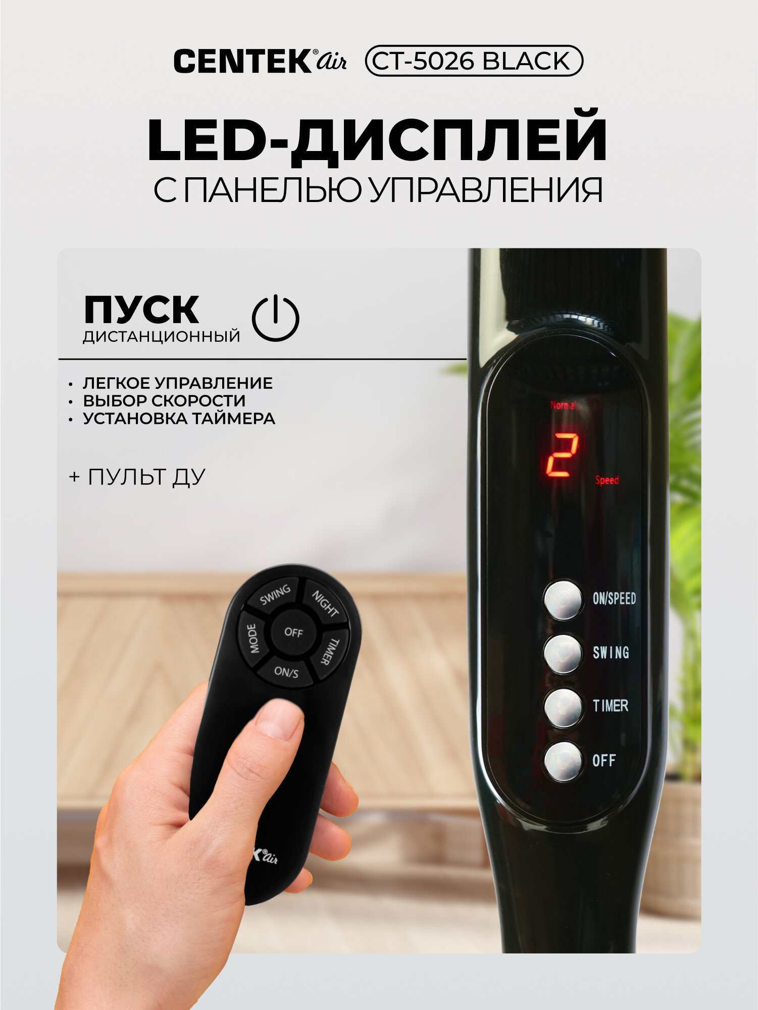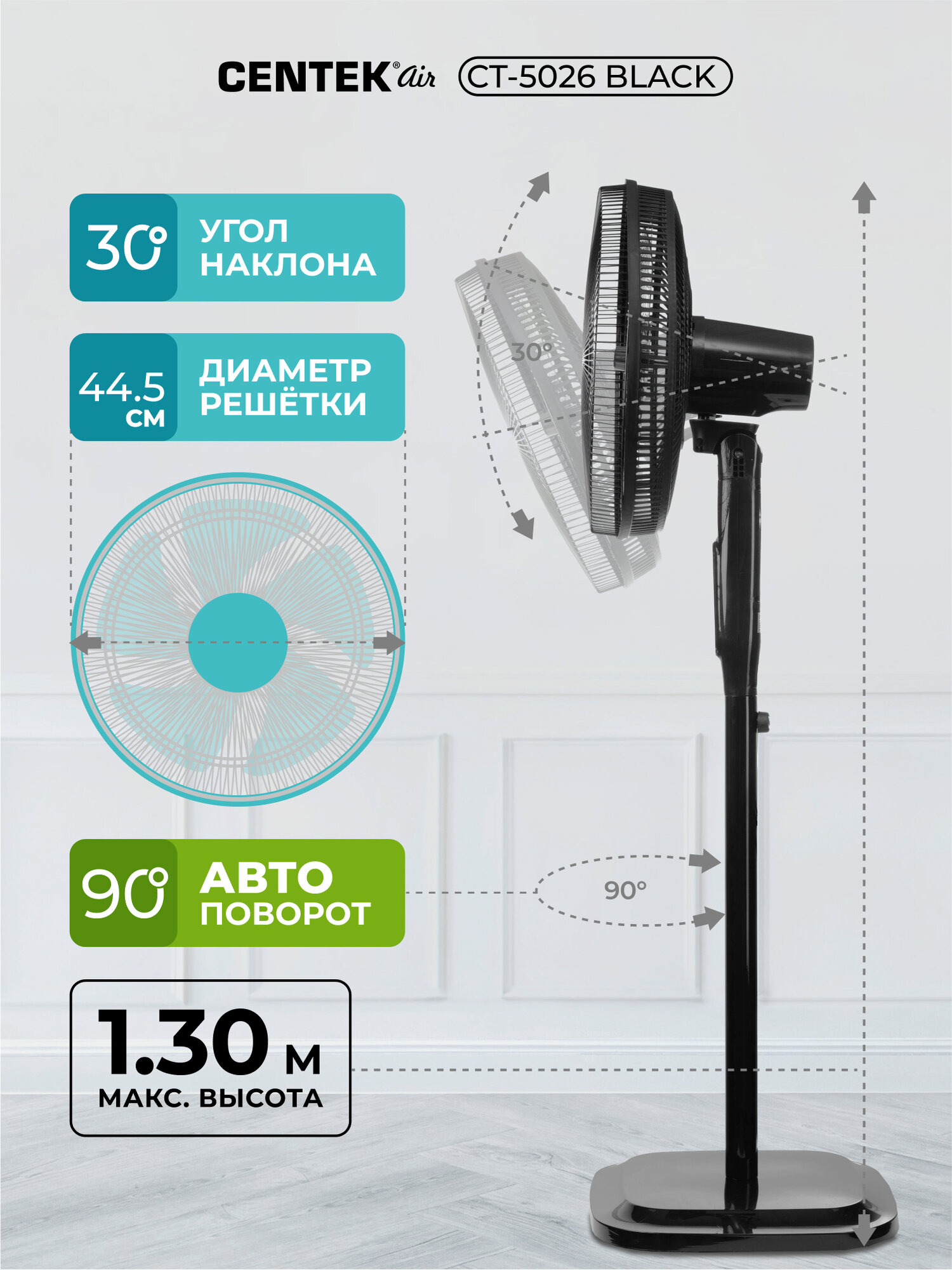 Элегантный черный цвет и современный дизайн вентилятора Centek CT-5026 гармонично впишутся в любой интерьер. Он не только эффективно выполняет свою функцию, но и станет стильным дополнением вашего пространства.