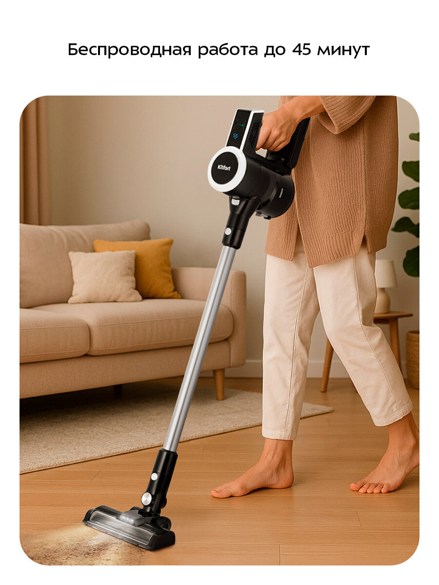 Сделайте выбор в пользу удобства и эффективности. Закажите вертикальный пылесос Kitfort KT-5393 сегодня и забудьте о проблемах с уборкой!