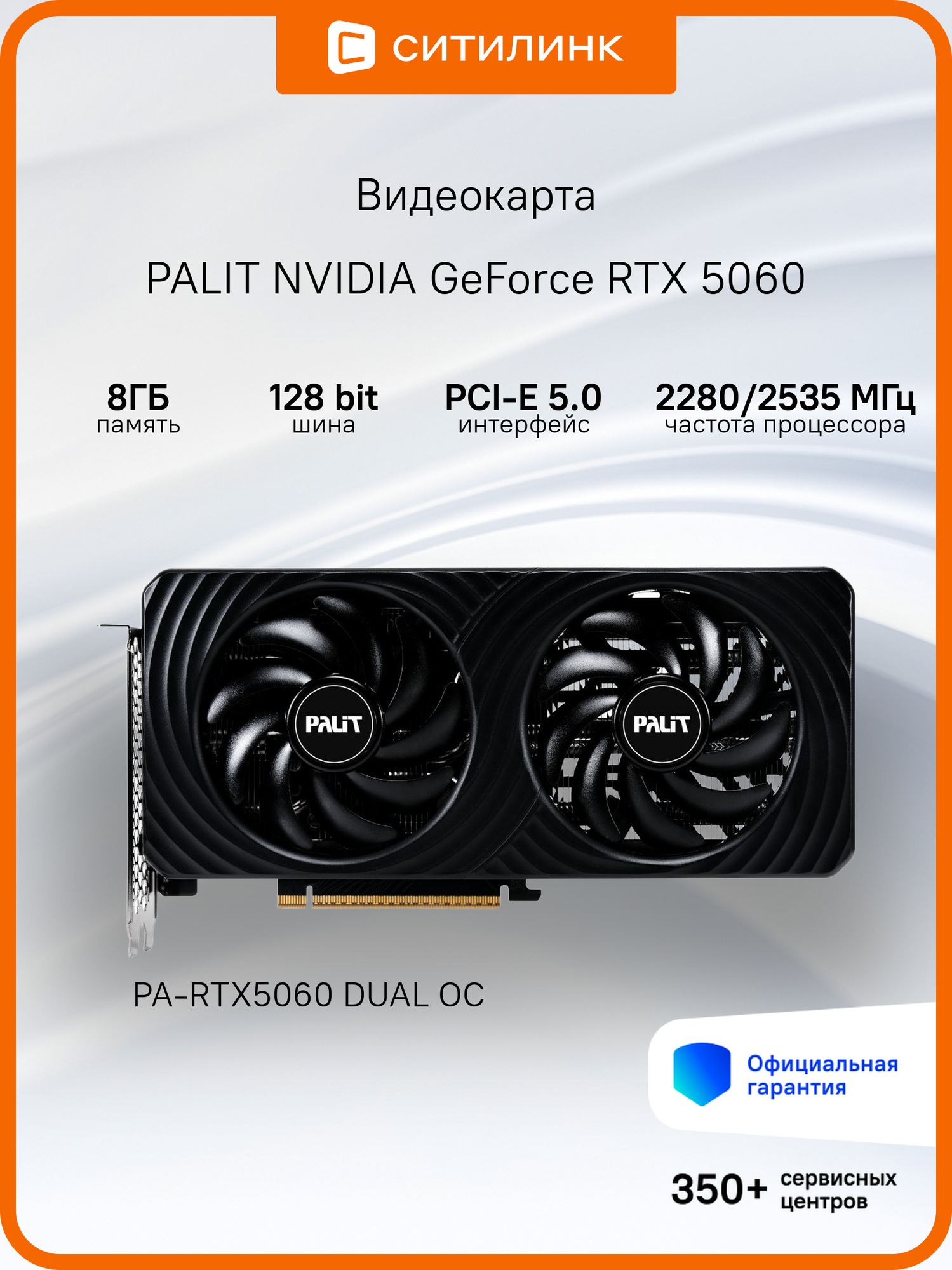 Улучшите свой игровой опыт с Palit RTX 5060 Dual OC 8GB. Закажите прямо сейчас и окунитесь в мир потрясающей графики!