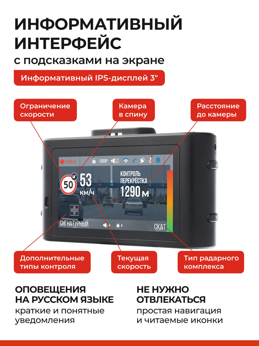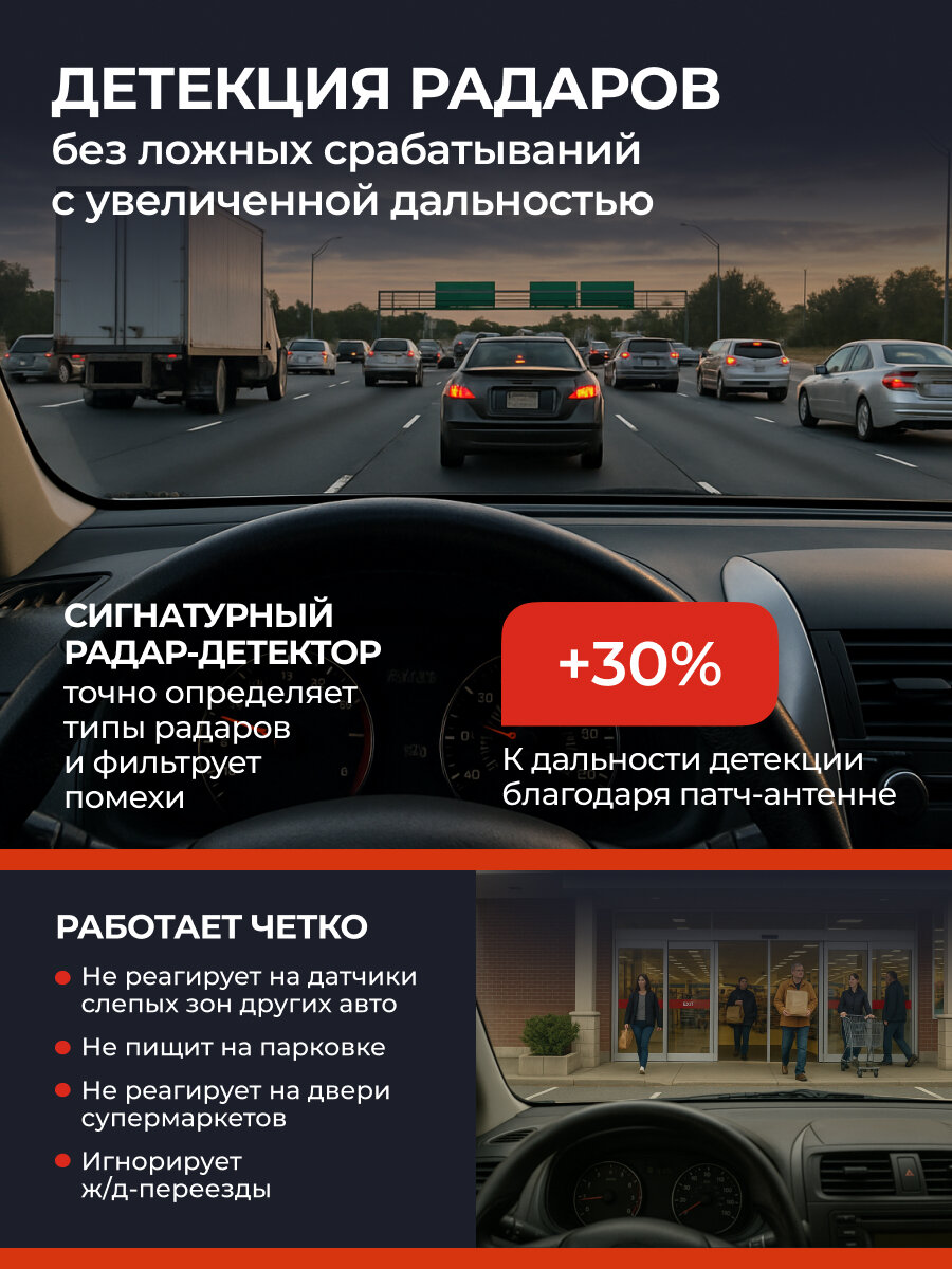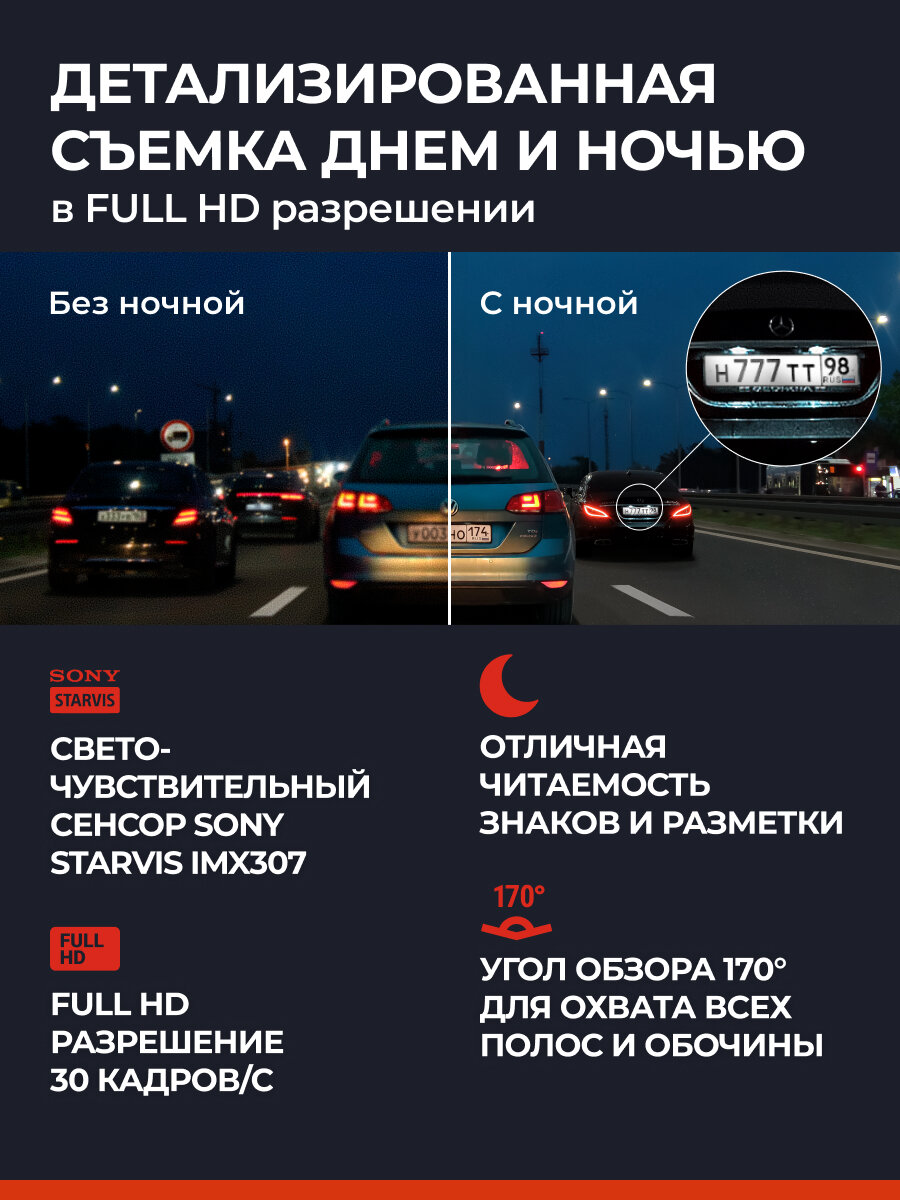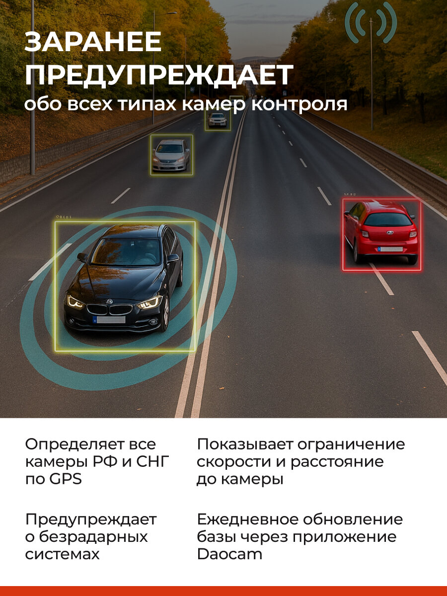 DaoCam Combo 2 CH — это современный видеорегистратор для автомобиля с двумя камерами и радар-детектором, который сделает качественные записи дорожной обстановки и обеспечит защиту в спорных ситуациях, а также убережет от штрафов. Есть все для отличной съемки: Сенсор Sony IMX307 обеспечивает отличное качество записи как в дневное, так и в ночное время, создавая чёткие и детализированные видеоматериалы независимо от уровня освещенности. Технология WDR предотвращает засвечивание фрагментов видео и выравнивает яркость изображения при резком встречном свете. CPL-фильтр снижает блики и отражения, повышая цветовую насыщенность и улучшая общую картинку записи. Широкий угол обзора авторегистратора 170° позволяет захватывать до шести полос движения, обеспечивая полную картину происходящего на дороге. Видеорегистратор с камерой заднего вида снимает происходящее не только спереди, но и позади автомобиля, что является важным дополнением для защиты в случае ДТП, и упрощает движение задним ходом благодаря ассистенту парковки. Продуманная защита от штрафов: Радар-детектор с высокой чувствительностью обнаруживает все типы радарных комплексов на дальних расстояниях, обеспечивая своевременные предупреждения и предотвращая штрафы. Сигнатурная технология исключает ложные срабатывания, фильтруя помехи от других источников радиосигналов. GPS-информер предупредит обо всех камерах контроля на вашем пути, оповещая даже о наличии муляжей. Удобство и функциональность: Wi-Fi поддержка позволяет легко обновлять базы данных камер и прошивку через смартфон, а также управлять настройками и просматривать записи, не выходя из авто. Магнитное крепление надежно фиксирует устройство на стекле, предотвращая тряску, и позволяет выполнять установку и снятие гаджета одним простым движением. Высокая надежность и долговечность: Мощный процессор MStar 8339 обеспечивает надежность и стабильность регистратора при записи и выполнении всех рабочих процессов. Суперконденсатор устойчив к температуре от -20°C до +65°C — даже после долгого стояния на морозе и под жарким солнцем регистратор сохраняет свою функциональность. G-сенсор (датчик удара) автоматически защищает видеозаписи от удаления и перезаписи при столкновении или резком движении, что помогает сохранить важные доказательства в случае происшествия.