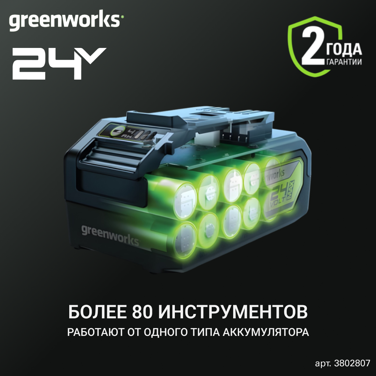 Greenworks GD24ID3 - это инвестиция в качество и надежность. Этот инструмент прослужит вам долгие годы, помогая решать самые сложные задачи. Обратите внимание, что данная комплектация поставляется без аккумулятора и зарядного устройства, что позволяет вам выбрать оптимальную комбинацию, исходя из ваших потребностей и уже имеющихся аккумуляторов Greenworks 24V.