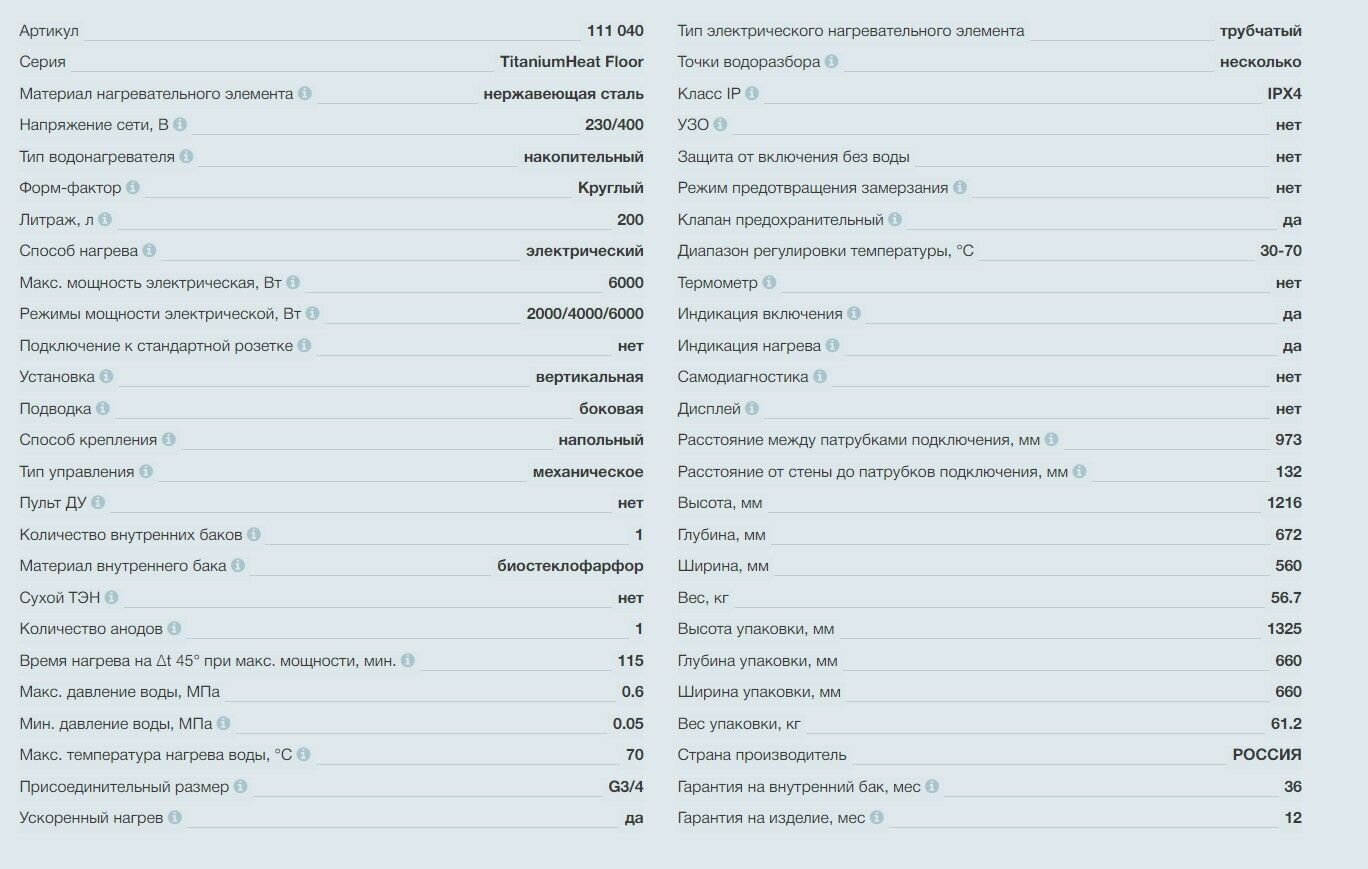 Этот напольный водонагреватель вертикальной установки станет незаменимым помощником в обеспечении комфорта вашей семьи. Большой объем бака позволит вам не беспокоиться о нехватке горячей воды даже при активном использовании.