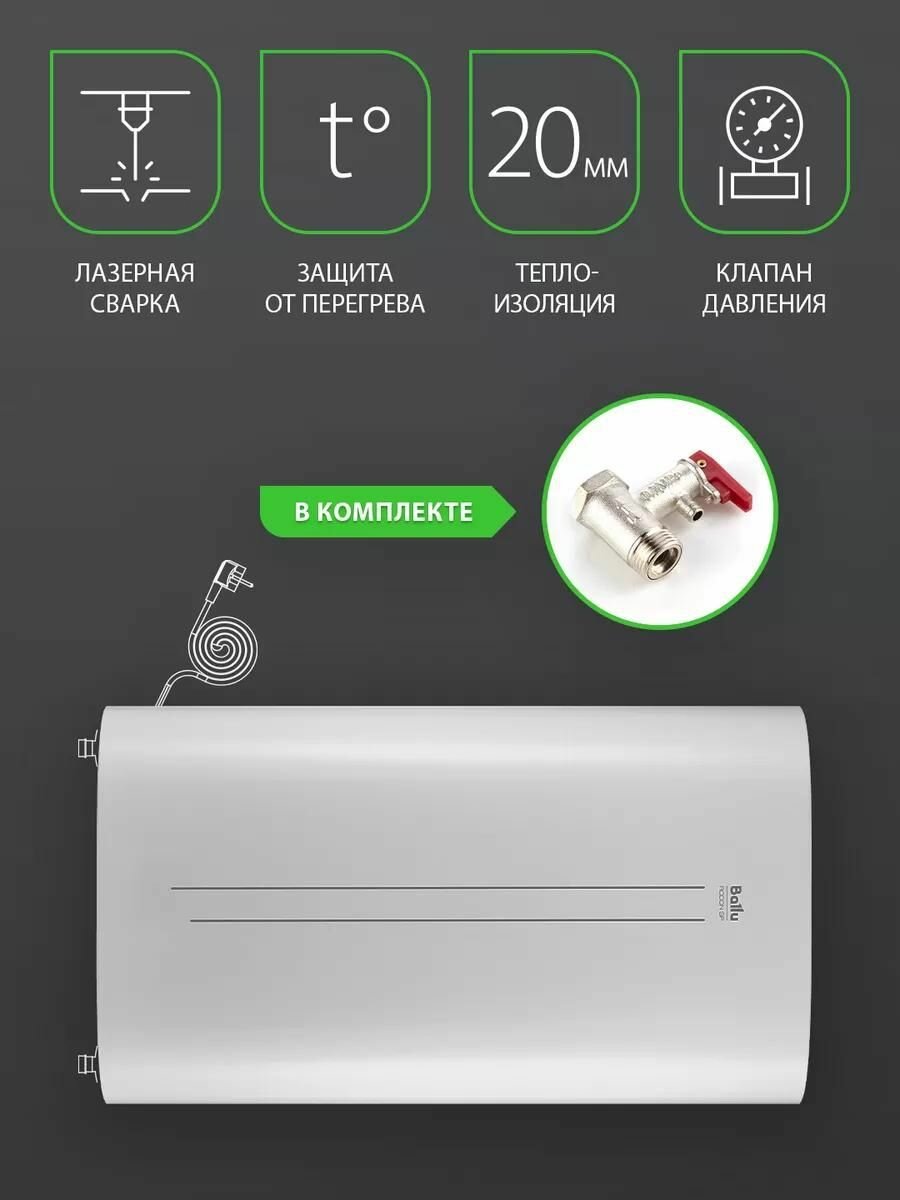 Водонагреватель Ballu BWH/S 100 литров (Rodon SP_2) сочетает в себе современный дизайн и функциональность. Он гармонично впишется в интерьер вашей ванной комнаты или кухни, не занимая много места. Продуманная конструкция и качественные материалы гарантируют надежность и долговечность прибора.