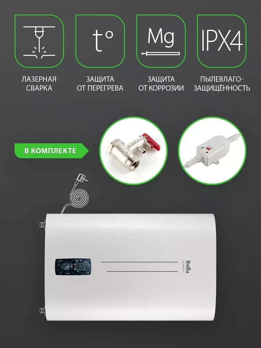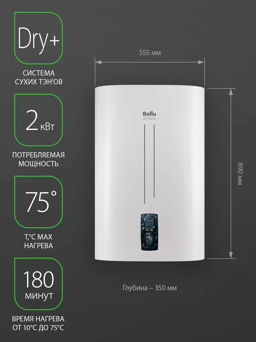 Ballu BWH/S 80 литров Artendo DH_11 разработан с учетом требований безопасности, что гарантирует его надежную работу и длительный срок службы. Специальные защитные функции предотвращают перегрев и образование накипи, обеспечивая бесперебойную подачу горячей воды.