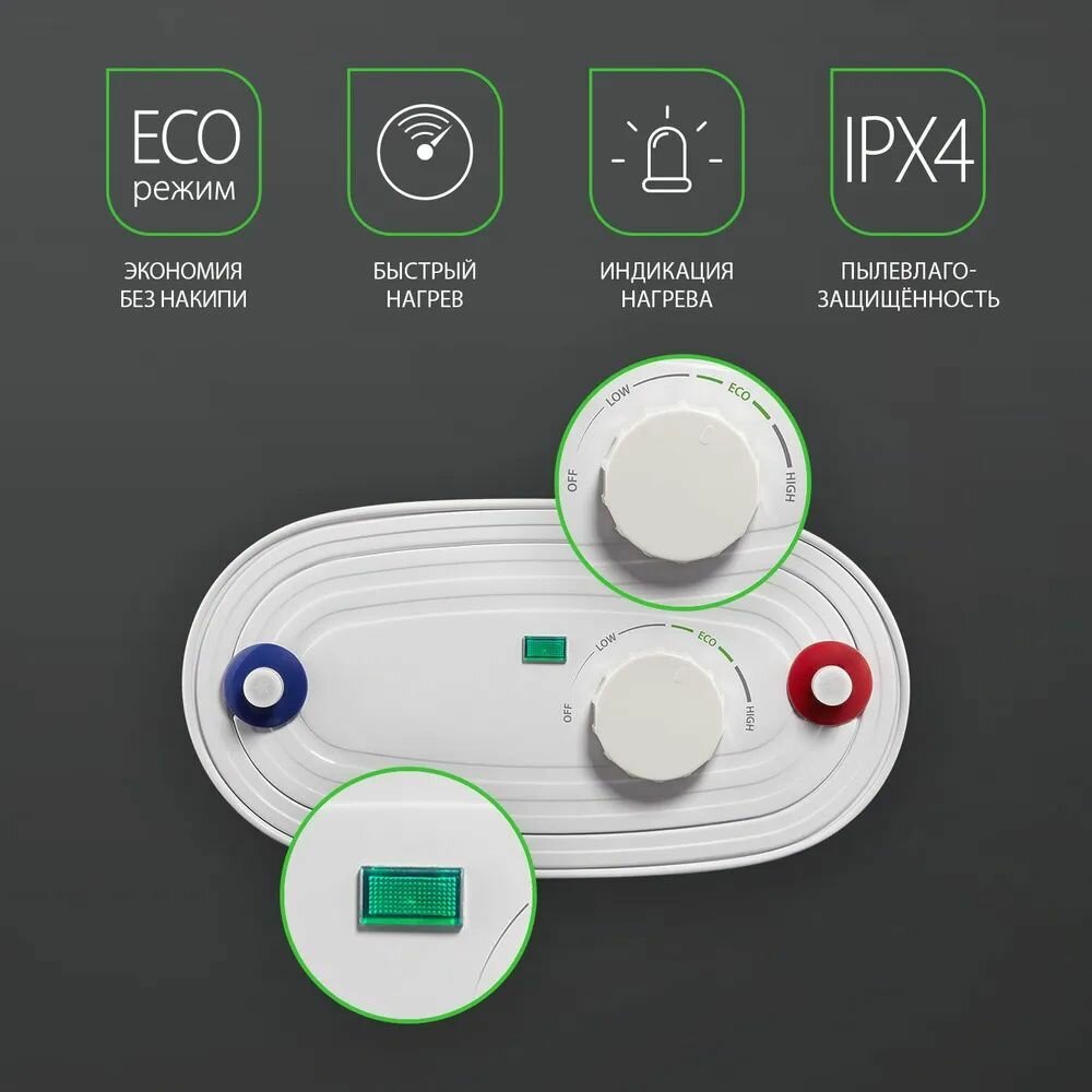 Этот водонагреватель сочетает в себе современные технологии, простоту в использовании и долговечность. Он спроектирован с учетом потребностей современного пользователя, предлагая удобное управление и экономичное потребление электроэнергии.