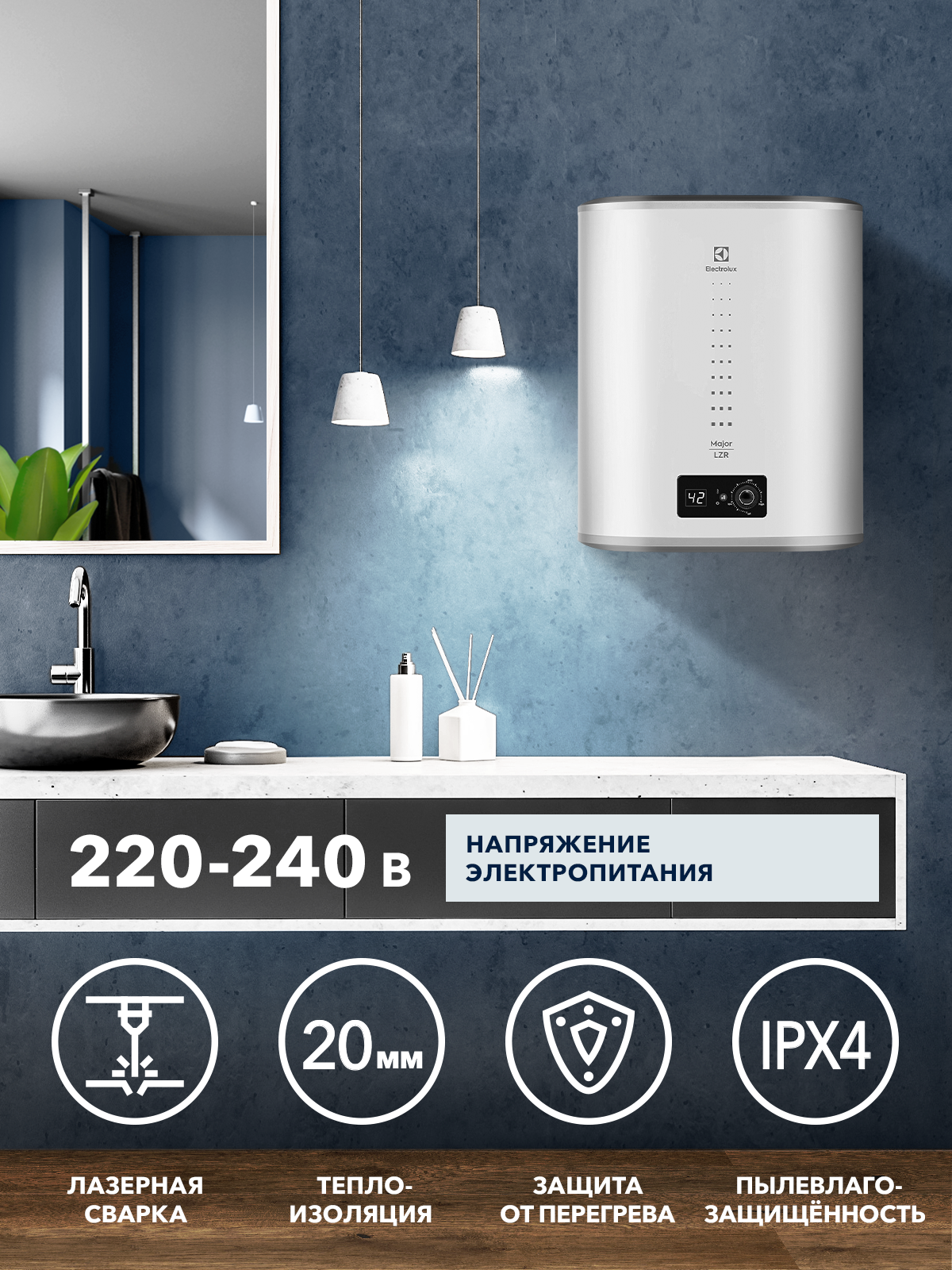 Electrolux EWH 30 Major LZR 3.3 отличается высокой энергоэффективностью, что позволяет существенно снизить расходы на электроэнергию. Специальная конструкция и качественная теплоизоляция минимизируют потери тепла, обеспечивая экономичное потребление энергии.