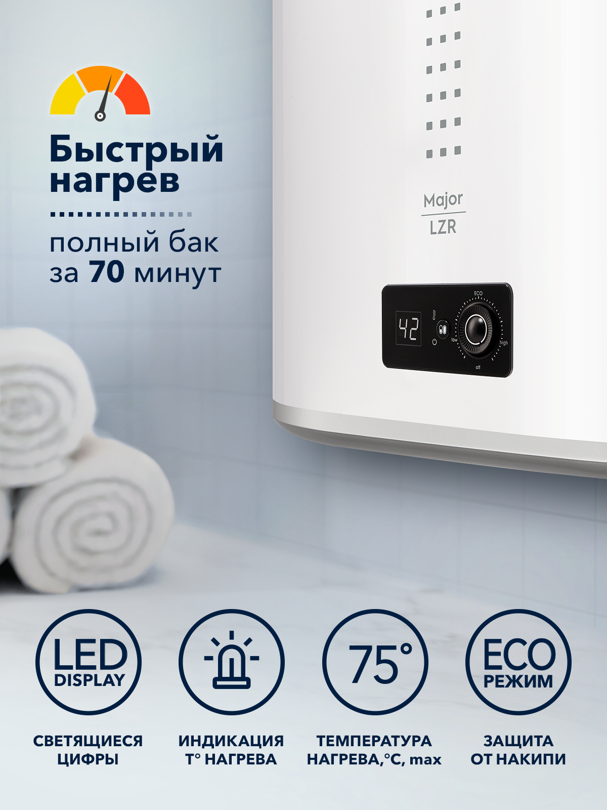 Простота установки и эксплуатации: Легкий монтаж и интуитивно понятное управление делают использование водонагревателя максимально комфортным.