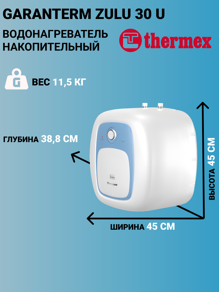 Водонагреватель Garanterm Zulu 30 U – это инвестиция в комфорт и удобство вашей семьи. Он обеспечит вас горячей водой в любое время года, сделав вашу жизнь более комфортной и приятной. Забудьте о проблемах с горячим водоснабжением – с Garanterm Zulu 30 U у вас всегда будет горячая вода под рукой.
