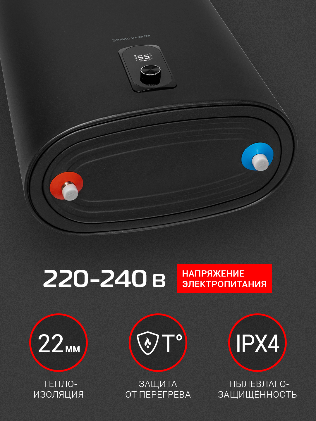 Элегантный графитовый цвет корпуса придает водонагревателю современный и стильный вид, который гармонично впишется в любой интерьер ванной комнаты или кухни. Удобное управление позволяет легко настраивать температуру воды и контролировать работу устройства.
