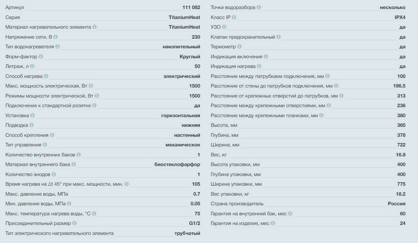 Thermex TitaniumHeat 50 H Slim создан с использованием передовых технологий и качественных материалов, что гарантирует его надежность и долговечность. Он быстро нагревает воду до заданной температуры и поддерживает ее на постоянном уровне, обеспечивая комфорт в использовании. Простота установки и эксплуатации делает его отличным выбором для тех, кто ценит удобство и практичность.