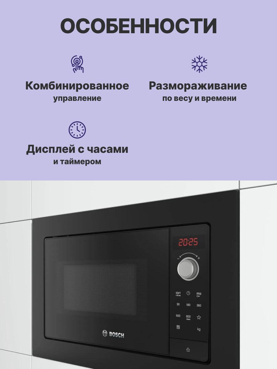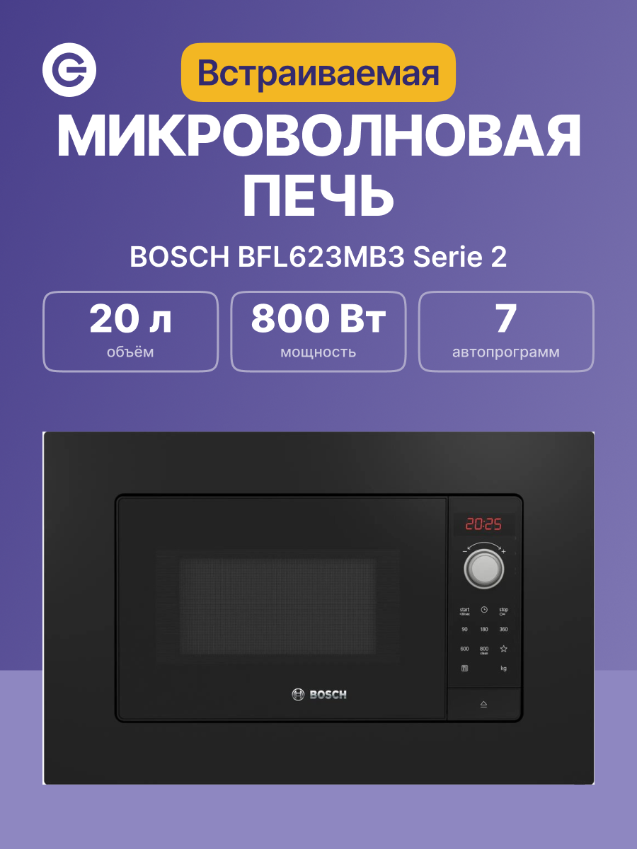 Ключевые слова: встраиваемая микроволновая печь, Bosch, BFL623MB3, Serie 2, микроволновка, купить микроволновку, микроволновая печь встраиваемая, Bosch микроволновка, техника для кухни, кухонная техника.