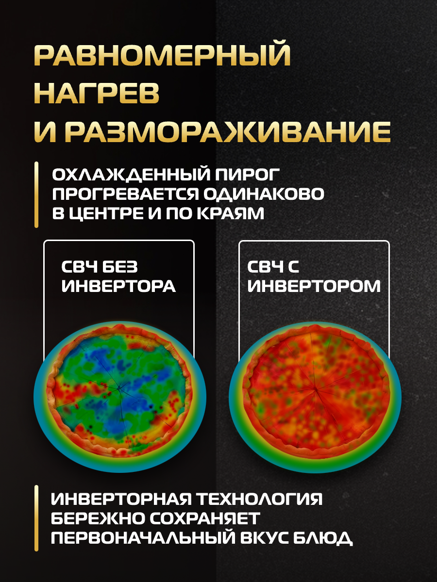 Благодаря инверторной технологии, печь обеспечивает равномерный и деликатный нагрев продуктов, сохраняя их вкус и питательные вещества. Отсутствие поворотного стола позволяет использовать пространство печи максимально эффективно, вмещая даже большие блюда и емкости.