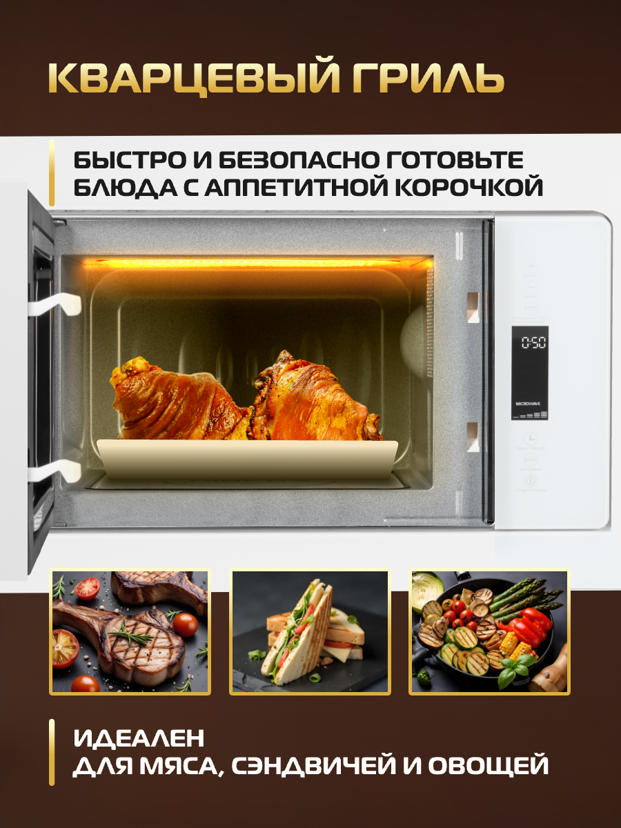 Простое и интуитивно понятное управление делает использование печи максимально комфортным. Различные режимы работы и функции помогут вам быстро и легко приготовить ваши любимые блюда или разморозить продукты.