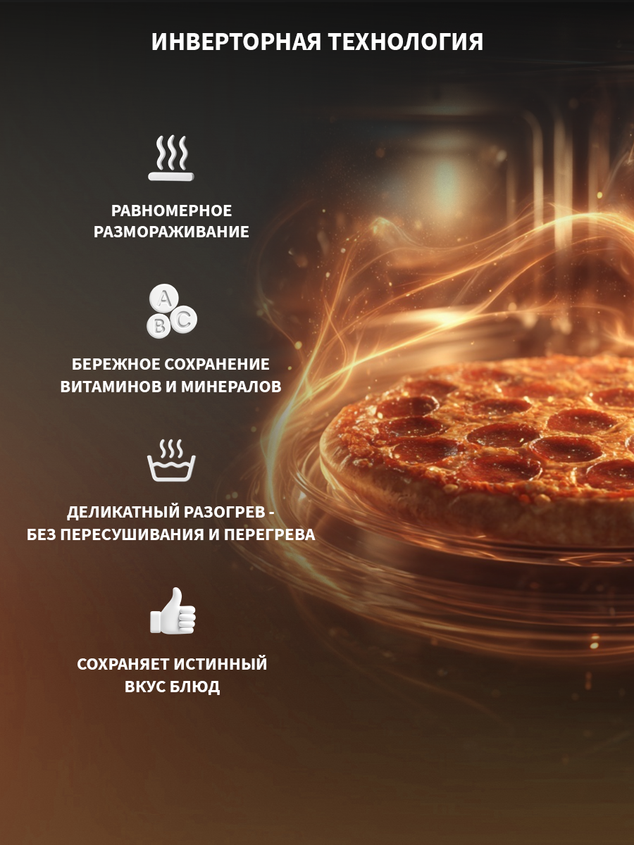 Благодаря инверторной технологии, эта печь обеспечивает равномерный и бережный нагрев продуктов, сохраняя их вкус и полезные свойства. Электронное управление делает процесс приготовления простым и интуитивно понятным. Больше не нужно гадать с настройками – выберите нужную программу и наслаждайтесь результатом.