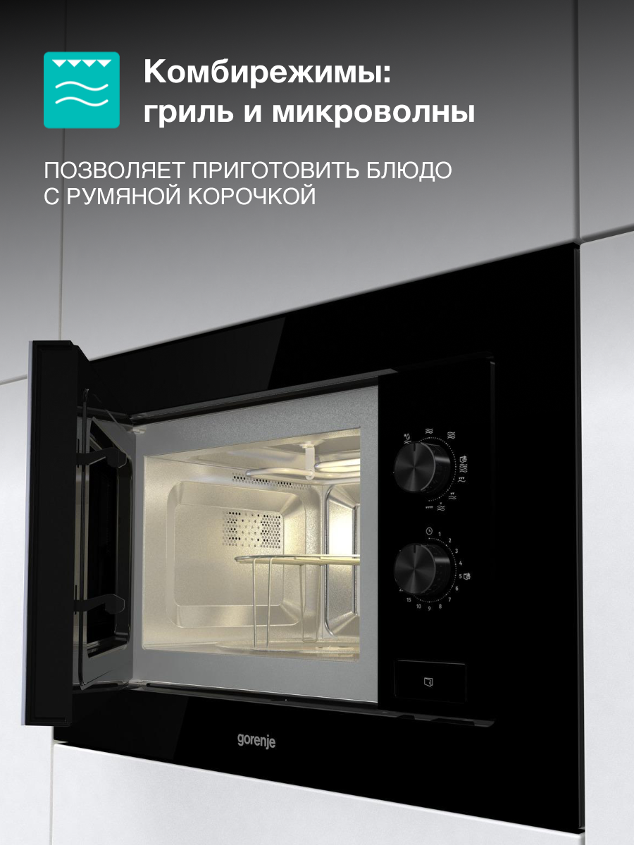 В комплектеВстраиваемая микроволновая печь GORENJE BM201EG1BG - инструкция 1 шт, Микроволновая печь, Рамка для встраивания, Решетка для гриля, Руководство по эксплуатации., Стеклянная тарелка поворотного стола, Стеклянный противень, мм 245 Решетка для гриля Стеклянный противень Рамка для встраивания