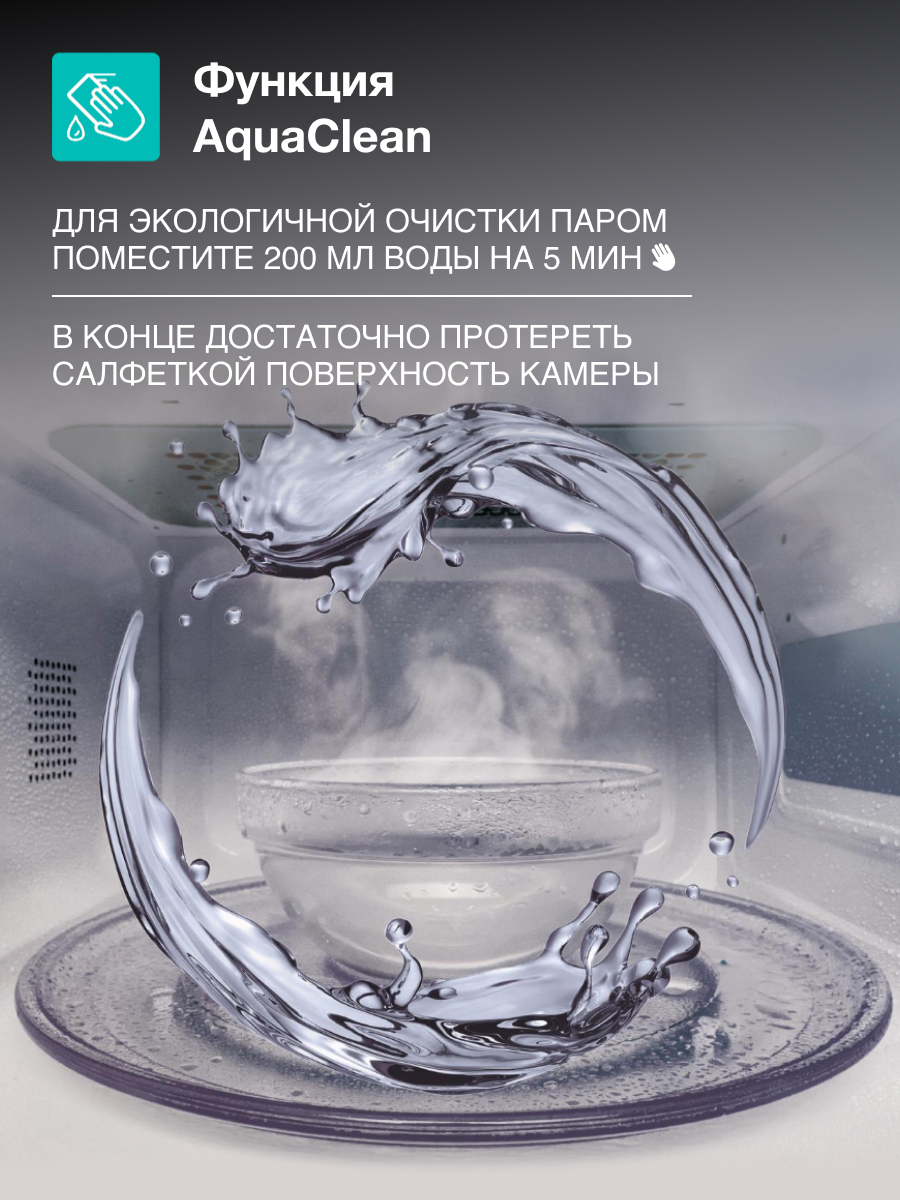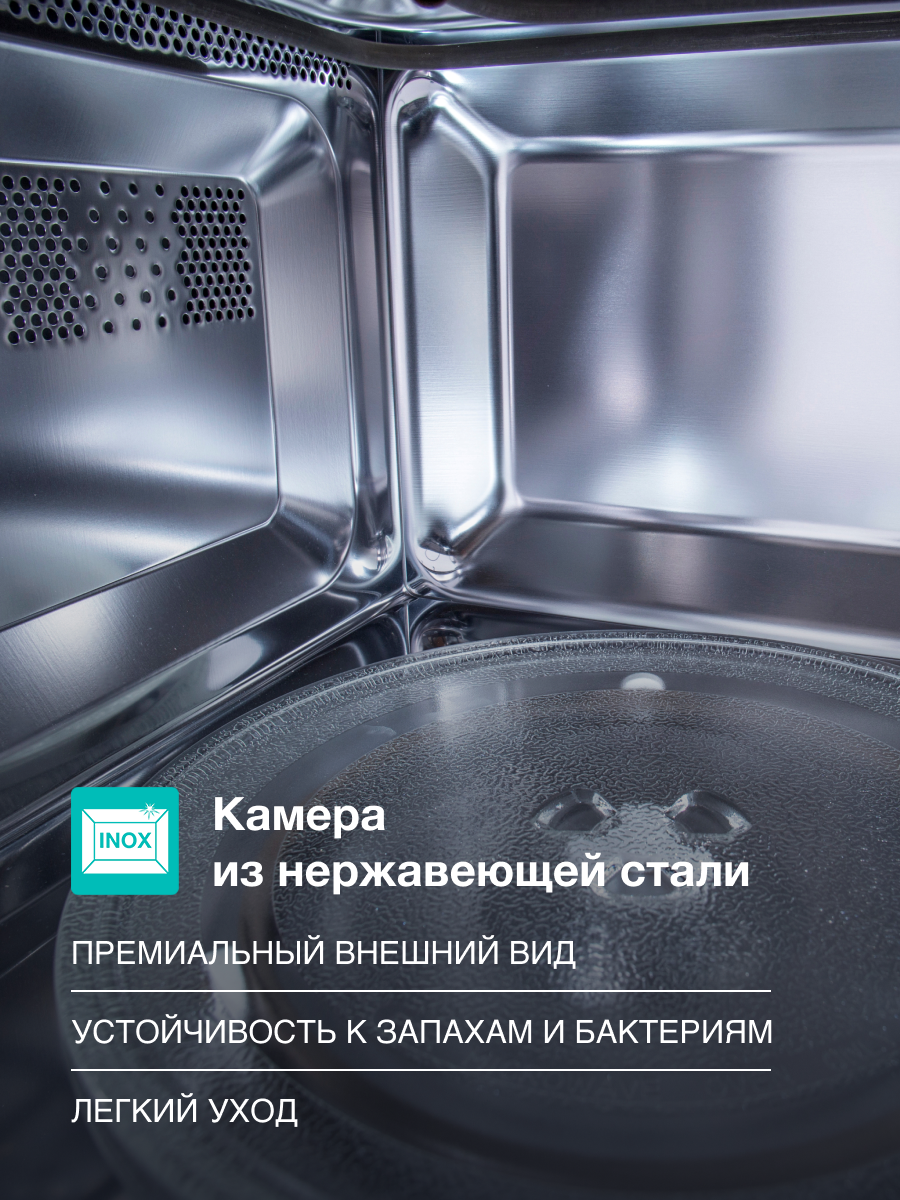 ОсобенностиБыстрый старт, Внутреннее освещение, Диаметр поворотного столика 24.5 см, Поворотный стол, Регулировка времени приготовления, С поворотным столом, Таймер, Часы
