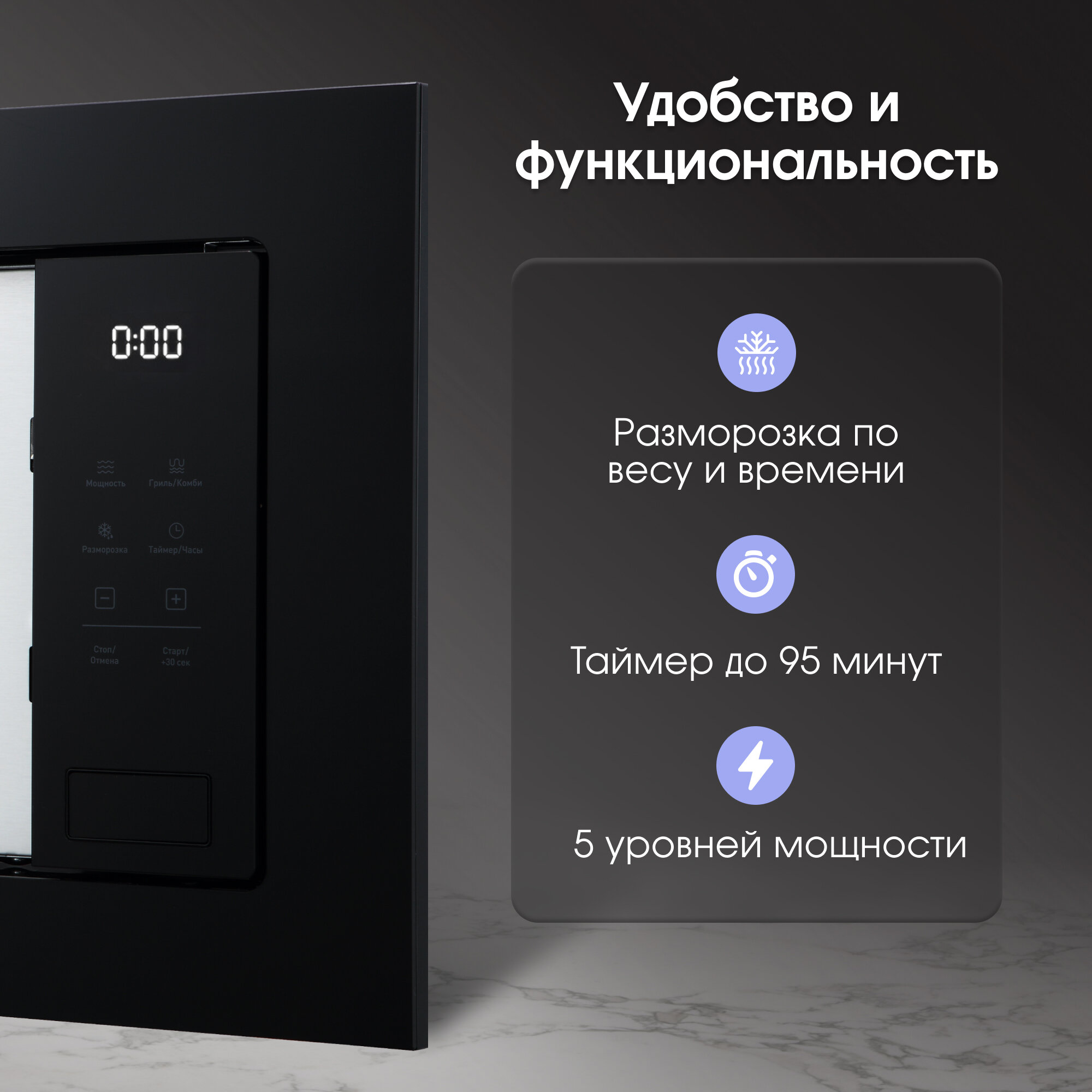 Эта микроволновая печь сочетает в себе высокую производительность и простоту использования. Она станет незаменимым помощником на вашей кухне, позволяя быстро и легко разогревать блюда, готовить вкусные ужины и размораживать продукты. Благодаря встраиваемой конструкции, она экономит пространство и придает вашей кухне аккуратный и современный вид.