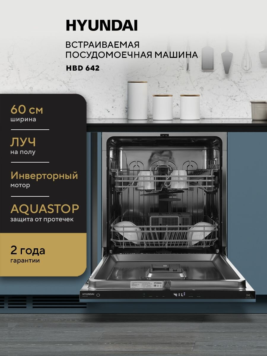 Ищете надежную и функциональную посудомоечную машину, которая идеально впишется в интерьер вашей кухни? Обратите внимание на встраиваемую посудомоечную машину Hyundai HBD-642 шириной 60 см! Эта модель сочетает в себе современный дизайн, передовые технологии и высокую эффективность.