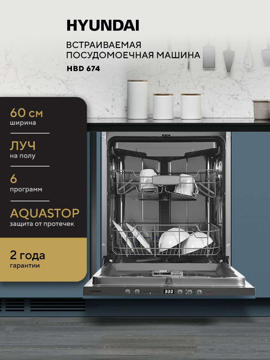 Встраиваемая посудомоечная машина Hyundai HBD-674 – это не только эффективный, но и стильный прибор, который гармонично дополнит интерьер вашей кухни. Благодаря своим функциональным возможностям и надежной конструкции, она станет отличным выбором для тех, кто ценит комфорт и практичность.